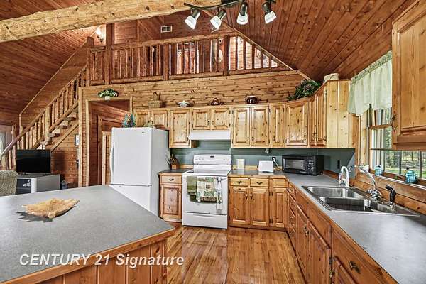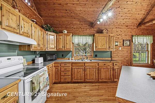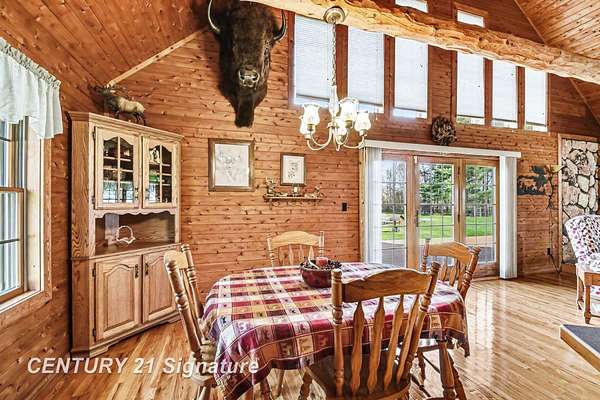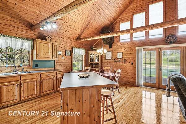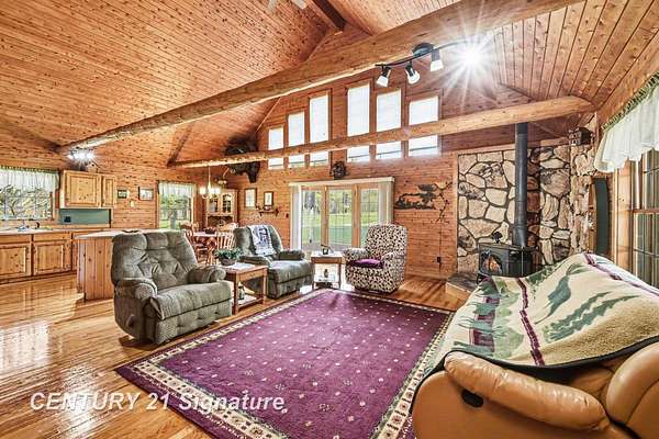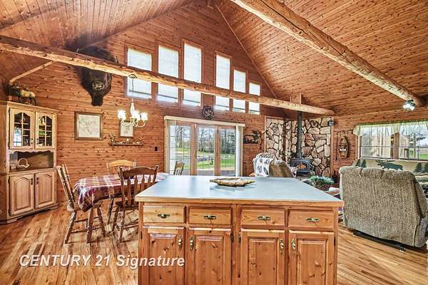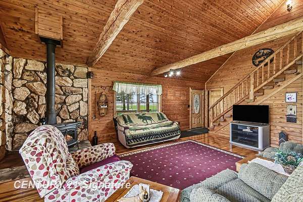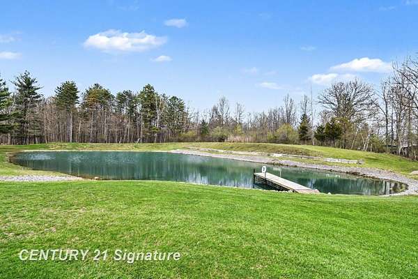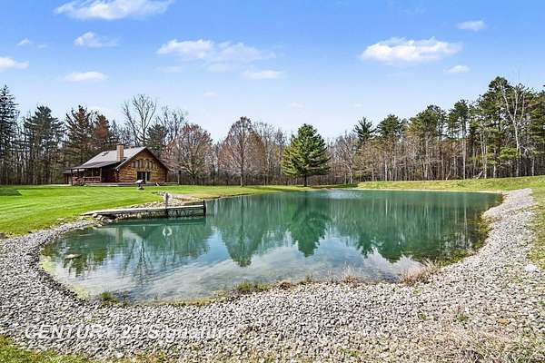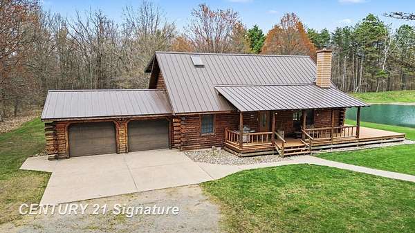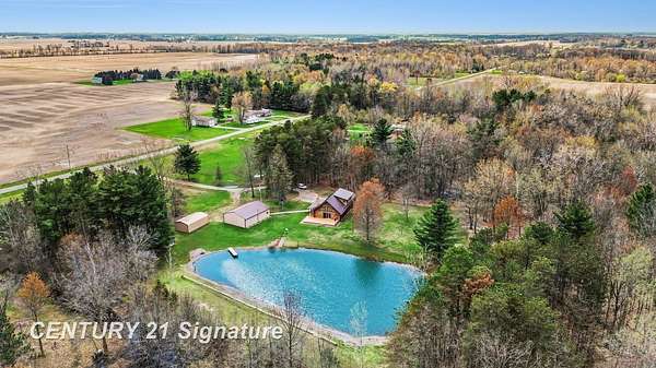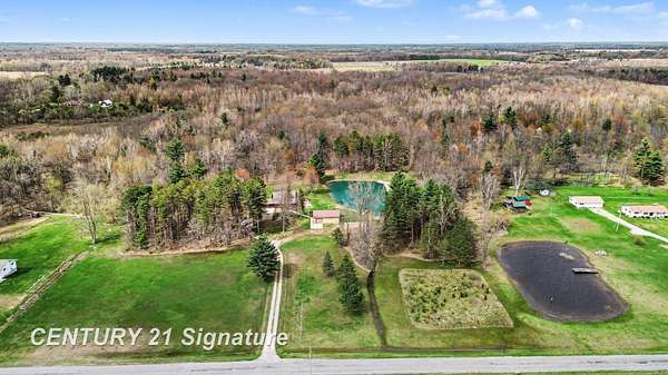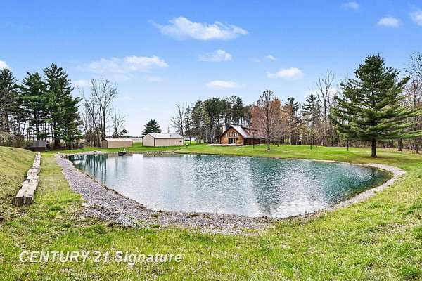 Enjoy the peaceful "up north" feeling without the long drive! This charming property offers the perfect blend of privacy, space, and functionality on 6 beautiful acres. Featuring 3 bedrooms and 2 full baths. The living room features a wood burner to keep you cozy during the winter months. Step outside and take in everything this property has to offer - a stocked pond ideal for fishing or quiet evenings by the water, a large deck perfect for entertaining or enjoying all of the wildlife. For those needing extra space, you'll appreciate the impressive 30x40 pole barn with electricity and the option to add heat, along with a 30x18 covered storage shed for additional equipment or toys. There's even a dog kennel with electricity, making this a great setup for animal lovers or hobbyists. Whether you're looking for a peaceful retreat or just more room to spread out, this property delivers the best of everything. Call today for your personal showing!