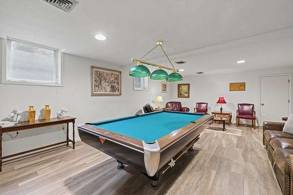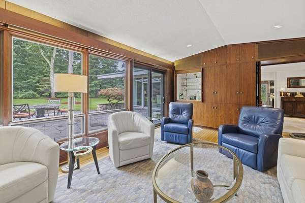 Custom Designed Mid-Century Modern ranch house. This luxurious home offers all the character and quality of one the finest homes in the city. Formal slate floor entryway to open foyer and powder room. The kitchen has custom walnut cabinetry with quartz countertops. Appliances include induction cooktop, full sized double wall ovens, sub zero refrigerator and Miele dishwasher. Laundry room with access to the garage and the exterior. There is a guest bedroom with full bath off the laundry room. Formal dining room with sliders to screened in porch. Living room has floor to ceiling windows along the south side and solid stone wall on the west side. Den has book matched teak walls and cabinetry, gas fireplace with floating hearth, wet bar, custom cabinets with Abalone pulls. The Main Bedroom has a separate dressing and full bath with tub and shower. Finished game room/den in basement. Private Well Water for Irrigation System.