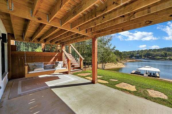 Est $7,785/moSmith Lake. Tucked in a private cove off the main channel, minutes from Jasper, this stunning lakefront home sits on 6.44 unrestricted acres with 685' shoreline. Features include 4BR+ bunk room, 2 living areas, butler's pantry, bar, and kitchenette, ice machine, 2 laundries, 2 car garage, 36 x 36 shop, and a new double-slip dock with 8,800 lb. lift. Prime location-rare estate setting.