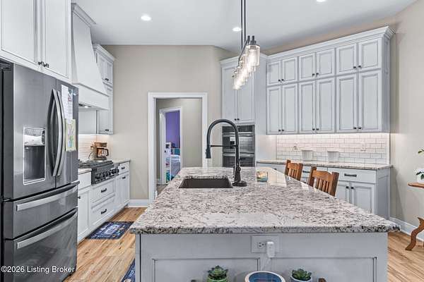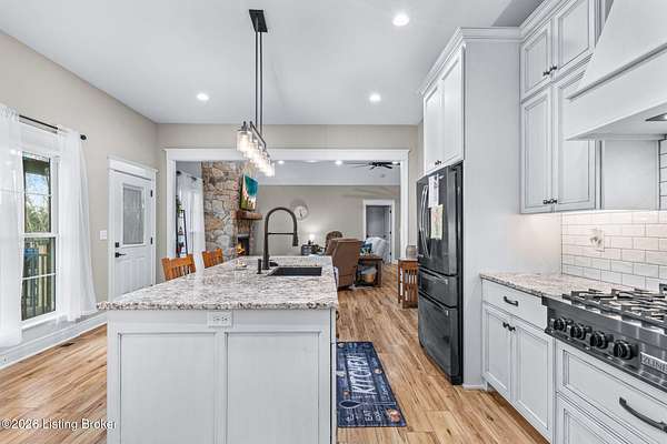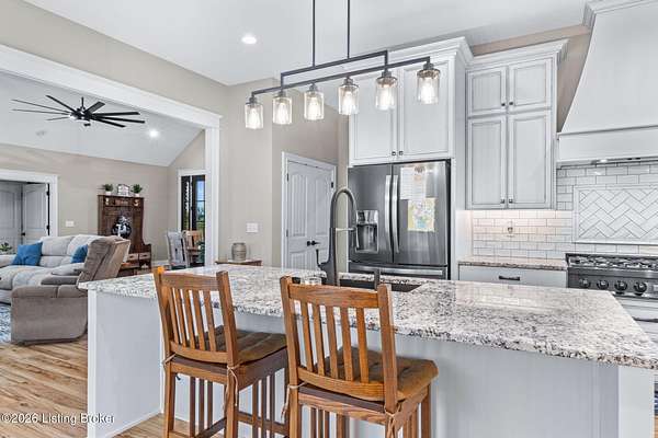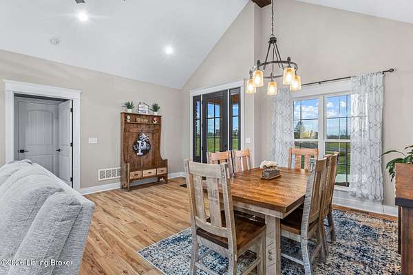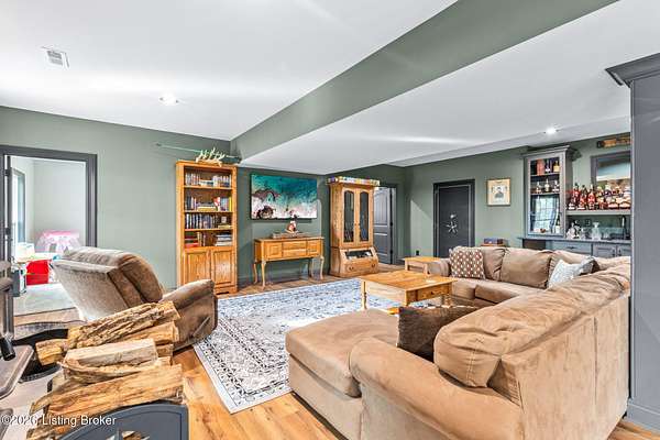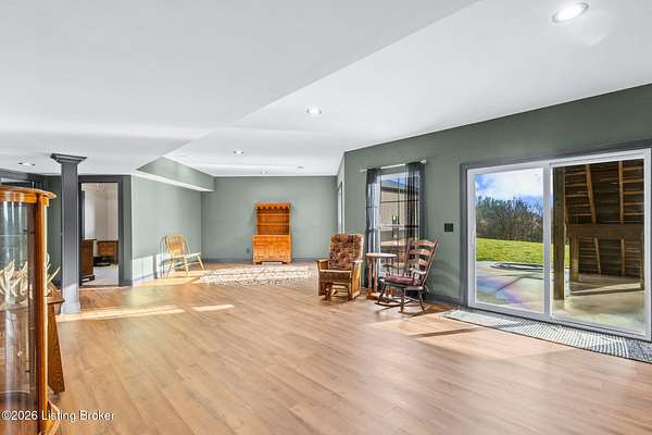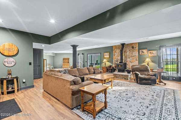 Get ready to fall in love with this place! Welcome to 178 Clayleen Way. A nearly new, custom-built home on 3.71 stunning acres, offering the perfect blend of privacy and functionality... all just 6 minutes from Taylorsville Lake. As you step inside, you're immediately drawn to the floor-to-ceiling stone fireplace, anchored by a truly one-of-a-kind centerpiece, a custom mantle crafted from a 200+ year-old reclaimed log, bringing history & character into the heart of the home. It's a feature you simply can't replicate. Soaring vaulted ceilings with exposed cedar beams, combined with high-end finishes & real stone throughout, give the home a rich, upscale feel while still feeling warm and inviting. The kitchen is equally impressive, featuring custom cabinets, granite counters, a gas range, a walk-in pantry & a large island. With 4 bedrooms, 3 full bathrooms, plus 2 additional bonus rooms, the layout offers incredible flexibility, easily functioning as a 5-6 bedroom home, office setup, or multi-purpose living space. The walk-out basement is built for entertaining, featuring a large open area and a bar space already roughed in for water hookup, ready for your vision. For added peace of mind, the home includes a fully reinforced concrete and steel safe room/gun vault, built with 18-inch walls, a 10-inch ceiling, and a vault-style steel door, a rare and highly valuable feature. Step outside onto the covered back deck with a cedar-lined ceiling and take in the views of your land, the perfect place to relax after a day at the lake. The 40x50 RV barn with 14-foot clearance offers space for your boat, camper & all your weekend toys, and is already prepped for electric and plumbing, giving you endless possibilities. Built for both comfort and resilience, the home features gas appliances, a wood/coal-burning stove, and the ability to function during power outages. This is more than a home, it's a rare combination of craftsmanship and modern functionality, all in one incredible property!