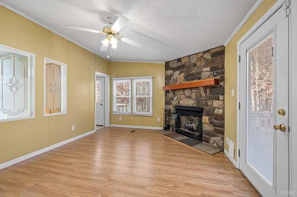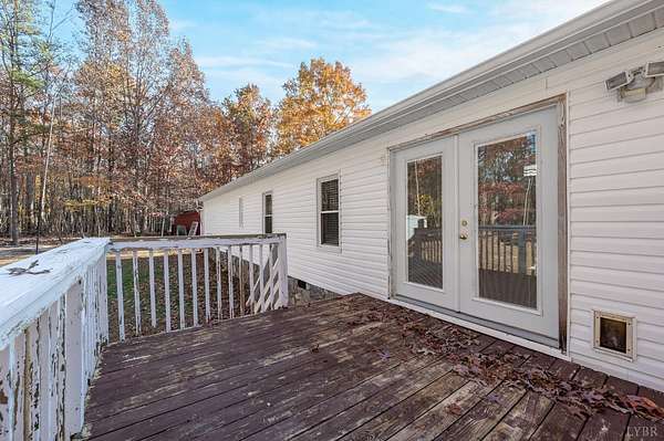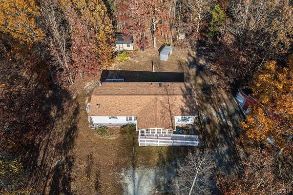 Nestled on a 5.66 private, wooded acres, this charming 1,534 sf double-wide home offers peace, space, and comfort. The inviting split floor plan provides excellent flow and privacy, featuring a spacious Primary Suite with a private Bathroom w/ Dbl. Vanities. The open-concept living area includes a large Kitchen with ample cabinetry, Gas range, and counter space, perfect for cooking and entertaining adjacent to a Den & LR. Enjoy cozy evenings by the gas fireplace or outdoor gatherings using the hard connection for your Grill. The property also boasts a massive three-bay detached garage with power, storage ideal for hobbies, vehicles, or a workshop. Recent updates include a roof just 3 years old and an HVAC system only 5 years old, ensuring efficiency and peace of mind. The lot also includes a large shed and a smaller shed used as a chicken coop. Surrounded by trees and nature, this home delivers a perfect blend of country living and modern convenience - your private retreat awaits!