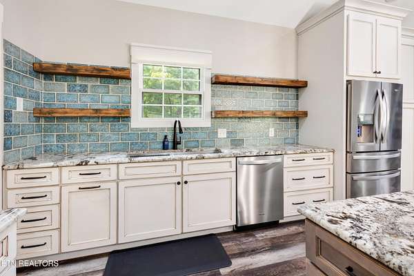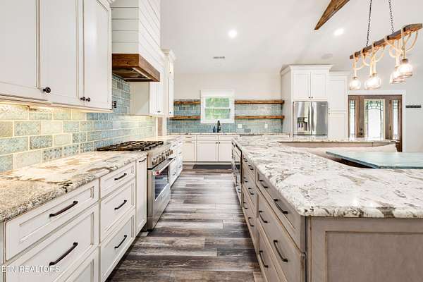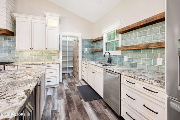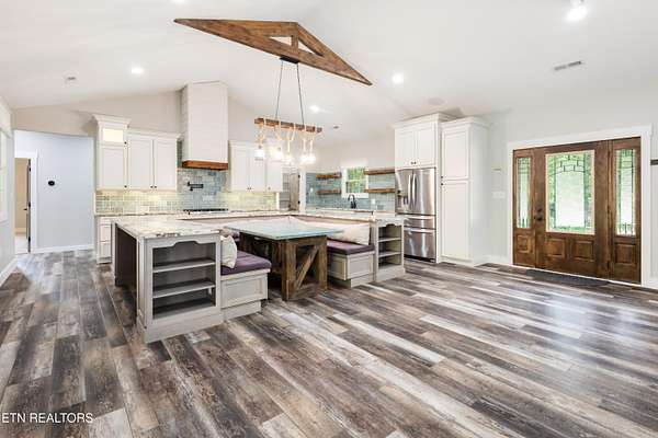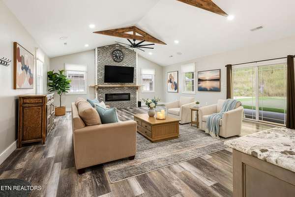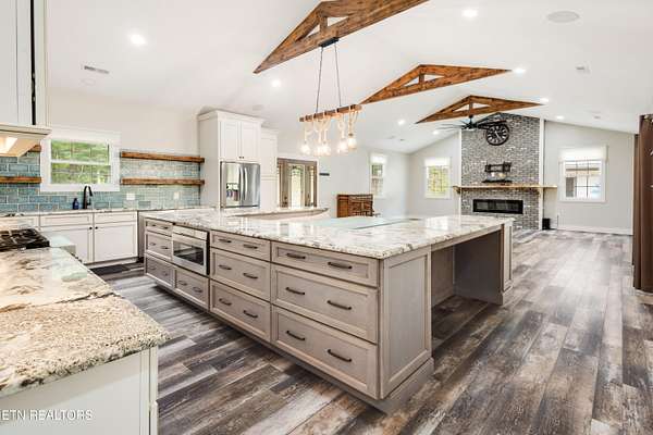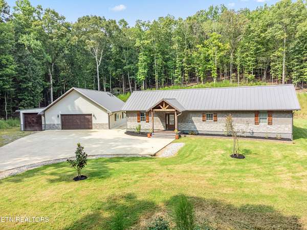 178 Emerald Pointe CL Located on the waterfront of 39,000 acre Watts Bar Lake, this home offers single level, open floor plan living... easy access to the water and a short golf-cart ride to you dual slips in the community docks -perfect for boating, fishing, and lakeside relaxation right at your doorstep. From its spacious layout and Gourmet Kitchen,this stunning 3-bedroom, 3-bathroom lakefront home offers the perfect blend of modern luxury and serene lake living. The home enjoys park-like privacy... 4.15-acres with direct access to the lake. The Craftsman-style with a king post entry and a durable Lifetime Standing Seam Metal Roof. Vaulted beam ceilings, the gourmet kitchen, complete with a custom-designed Granite U-shaped ''breakfast nook'' island and granite topped bar a 40'' farm sink, a 36'' Kitchen Aid gas stove with a pot filler, and a custom hood. Generous cabinetry, and a spacious walk-in pantry. The primary bedroom is the owner's retreat, with a walk-through closet that leads to a luxurious ensuite bathroom, with walk-in shower. The second large bathroom includes a soaker tub and stylish subway tile finishes. For added convenience, there is a detached 32x56 garage and workshop with a full bath, plus a 16x28 bonus room that can easily be transformed into guest quarters. Additionally, an expansion has been added to the garage, providing 15x56 of extra garage space. Enjoy the outdoors on the covered L-shaped patio or or out on your picnic deck with views of the private cove. Property also comes with a boat slip included with the HOA dues. This turnkey property offers a truly exceptional lakeside lifestyle, with fast, reliable internet perfect for remote work. Don't miss out on this rare opportunity-schedule your viewing today!