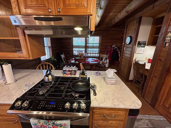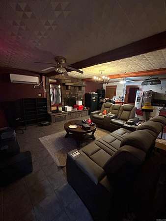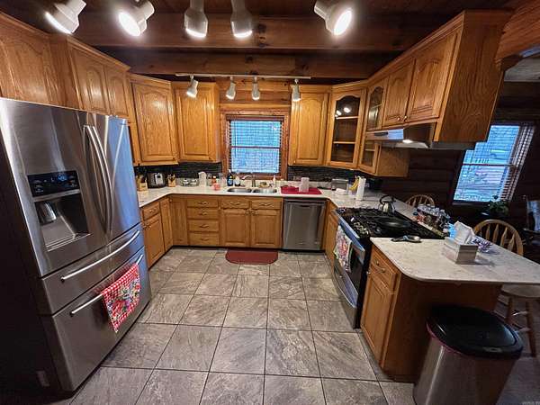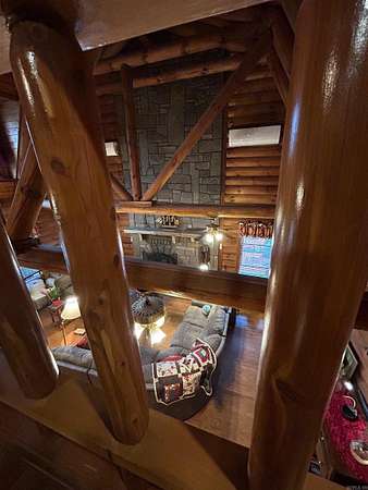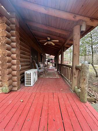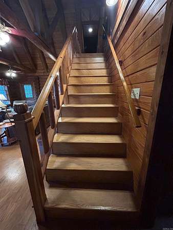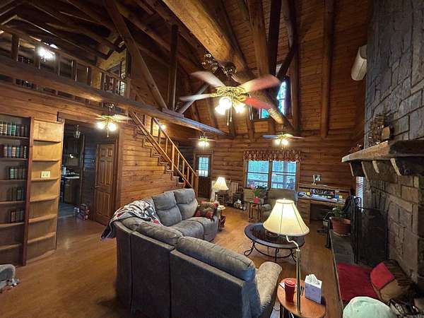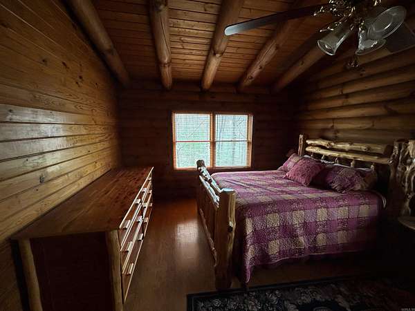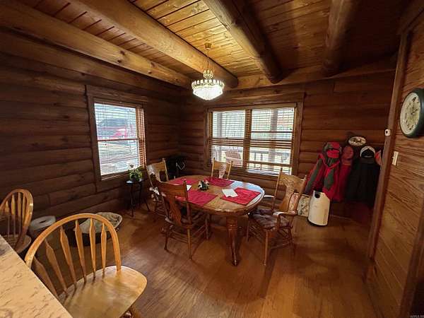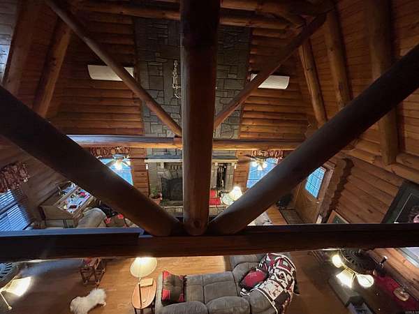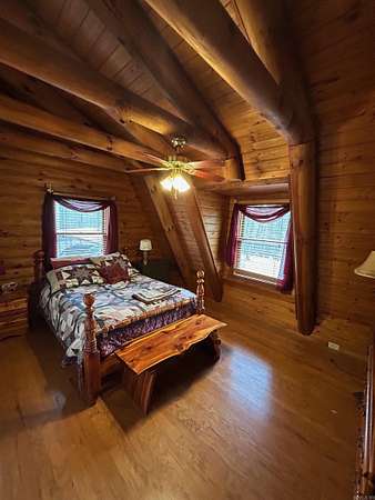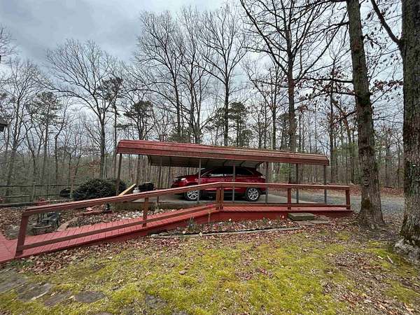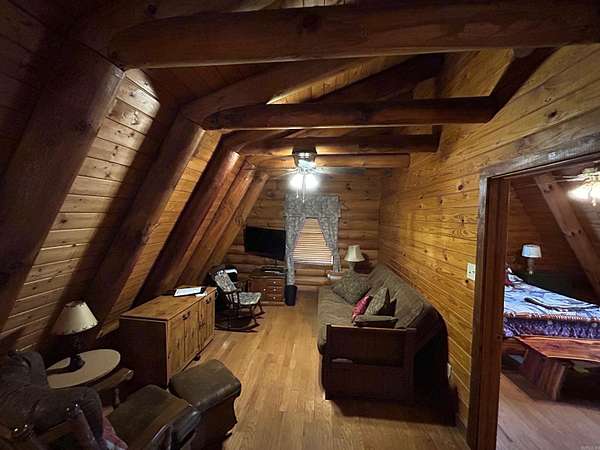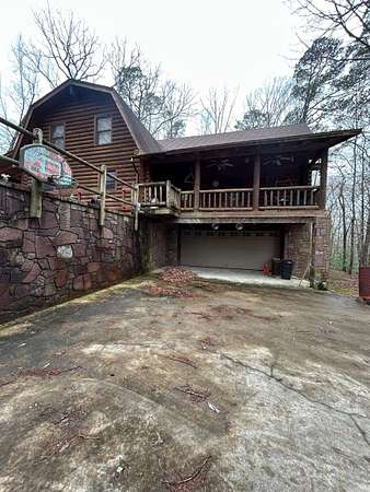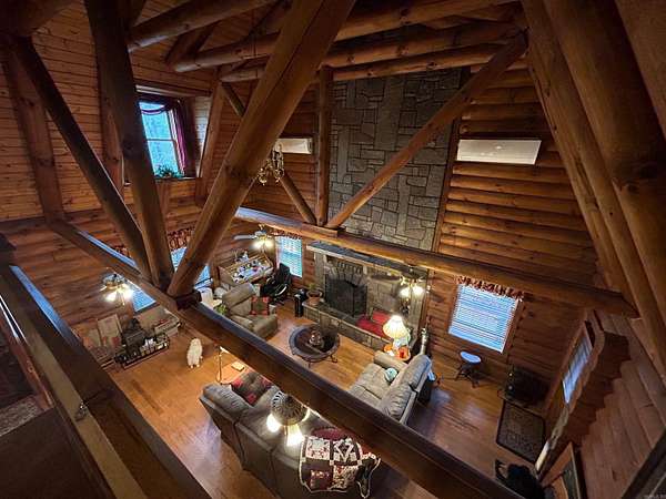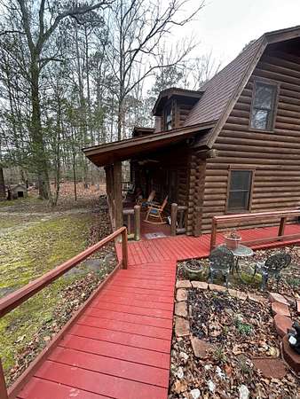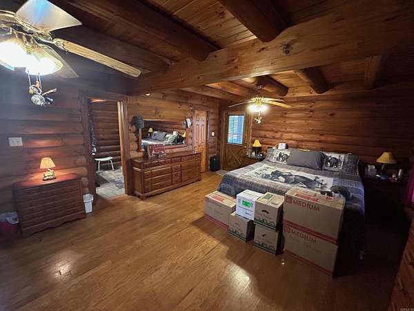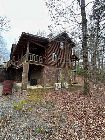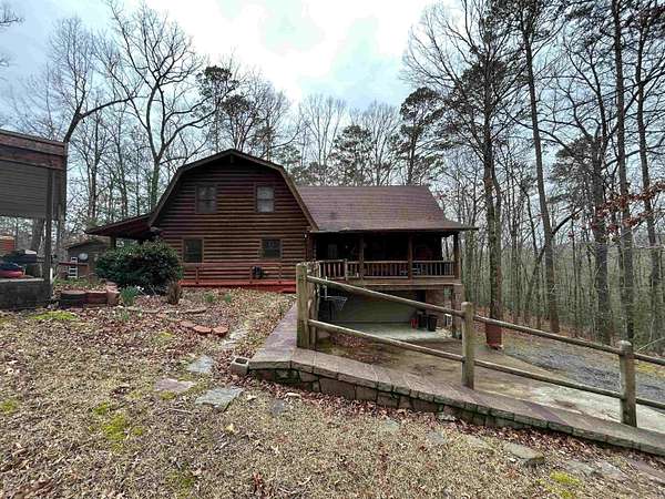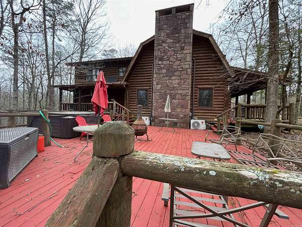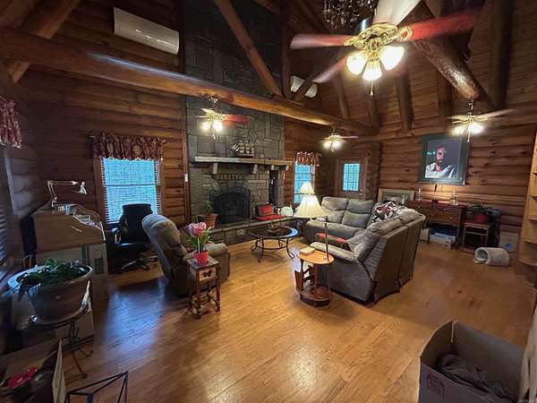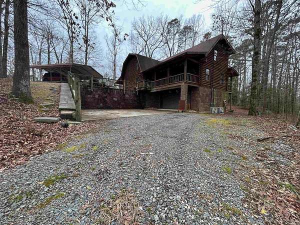 Located in the scenic Ouachita Mountains of western Arkansas, this beautiful country property sits on 4.54± acres and features a spacious 2,992 sq ft log home built with 10-inch logs from Heritage Log Homes. The 4-bedroom, 3.5-bath home offers a functional multi-level layout with the primary bedroom on the main level, two bedrooms and a sitting area upstairs, and a fourth bedroom in the finished basement. A custom rock fireplace runs from the main level into the basement, creating a striking rustic centerpiece. The finished basement also includes a mini kitchen and full bath, ideal for guests or additional living space. Multiple porches and a hot tub provide relaxing outdoor living. Improvements include a garage, two-car carport, RV carport with hookups, and a large well house with storage and a full bathroom. Located minutes from area lakes and recreation, the property offers excellent potential as a full-time home, vacation retreat, or investment in the natural beauty of western Arkansas.