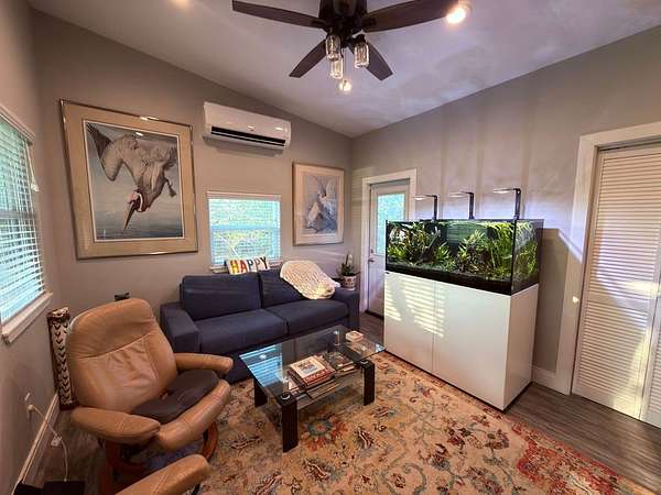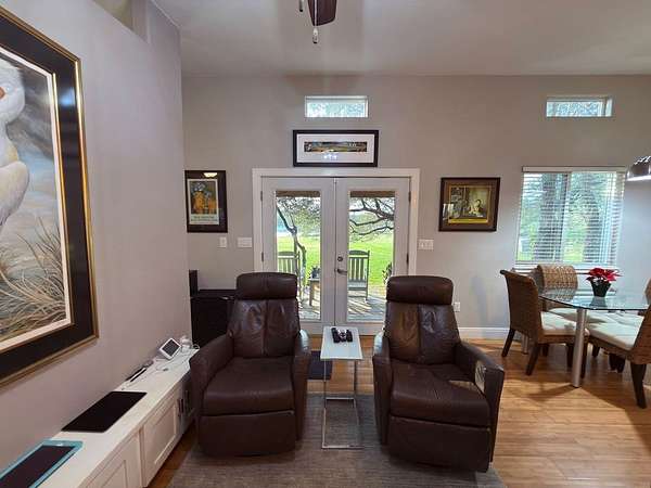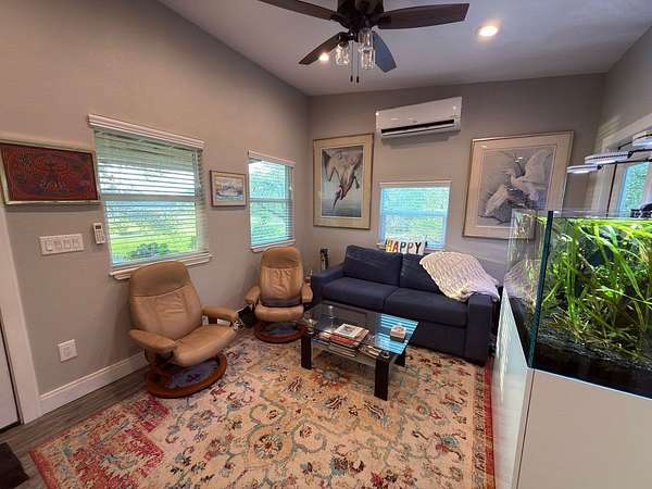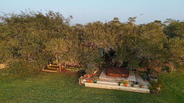 A RARE PRIVATE RETREAT ON PRISTINE ACREAGE!! Tucked away on just shy of 8 breathtaking acres in the county, this truly private 2-bedroom, 2-bath property offers a peaceful escape surrounded by nature! A tranquil pond stocked with catfish sets the scene, while abundant wildlife including deer, black-bellied whistling ducks, and majestic sandhill cranes create a daily connection to the outdoors. Unwind on the custom pine wood patio featuring a built-in hot tub thus creating the perfect spot to take in breathtaking sunsets and watch wildlife in its natural habitat. Thoughtfully designed for both comfort and functionality, the main residence spans 492 square feet and includes an owner's suite, custom bath, full kitchen with granite countertops and full-size appliances! Enjoy additional space to sit and relax while watching your favorite shows! Truly a cozy and functional space that provides for comfortable living quarters while you plan your future! The bonus room includes a 400 sqft space with a full bathroom, closet, and washer/dryer. It is ideal for guests, extended stays, office space or rental flexibility. Don't forget to bring the toys! These additional improvements on the property has room for it all! Enjoy a 308-square-foot workshop with a 1,200-gallon water reservoir, plus two additional storage buildings (12x16 and 12x25), a 3-car carport, raised garden bed and plenty of mature landscaping! This unique property offers the perfect blend of rustic charm and modern convenience to escape the hustle and bustle, while keeping the comforts of home! It is the ultimate canvas for those seeking space and endless possibilities. Keep it for yourself or build your family's legacy with a custom home and shop! Schedule your private showing today and start living the life you deserve!