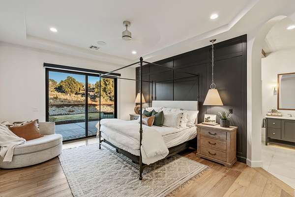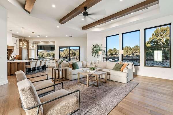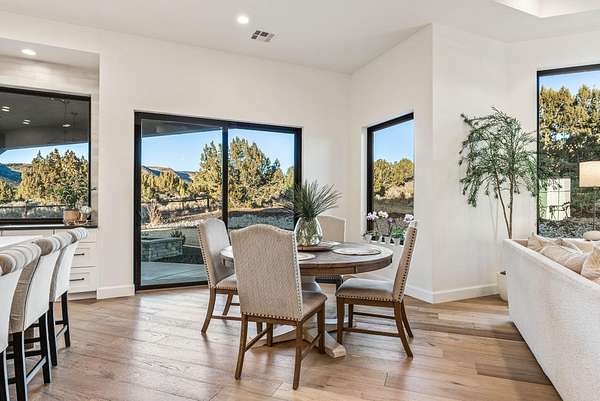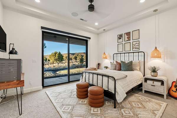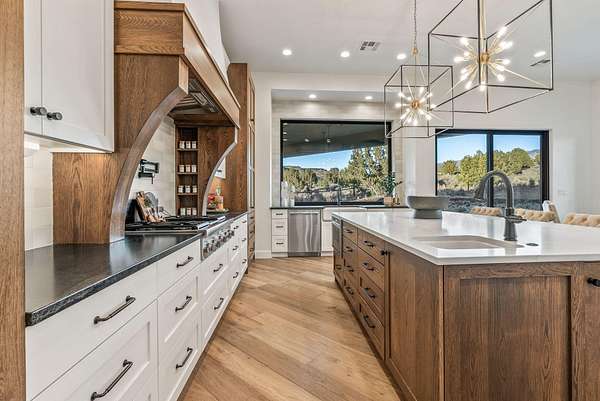 Nestled in a serene country setting, this exquisite home boasts stunning views and a timeless design. This custom home perfectly blends rustic charm with sophisticated elegance. With its sprawling 2.55-acre lot, surrounded by thousands of acres of BLM, this property offers a tranquil retreat from the world, while still being within reach of modern conveniences. In one direction, you have a 20 minute drive to downtown St George. Or, take a 5 minute ride to go crawdad fishing. The best of both worlds. Every detail was meticulously crafted with the finest materials. The kitchen is the heart of the home, and this gourmet kitchen is where the culinary magic takes place. It inspires creativity, facilitates flawless meal preparation, and provides a comfortable space for socializing with its open layout. Thermador appliances, ice maker, large hidden pantry, quartz and leathered granite countertops, and would you look at that.... a view out of the kitchen window. Who doesn't love a kitchen sink with a picture window over it. Exquisite wide plank wood floors add a touch of refinement and luxury to every space. The primary suite offers a spacious walk-in closet with custom organizers, providing ample storage ... with a pass through to the laundry room. Don't worry about cold feet... as this primary bathroom has heated floors as well. Don't miss out on this one... you can have a little bit of country and a whole lot of luxury in Dammeron Valley