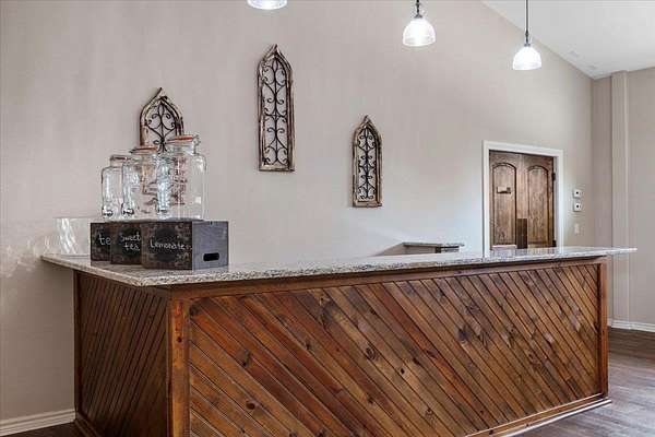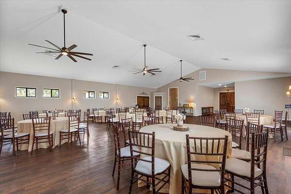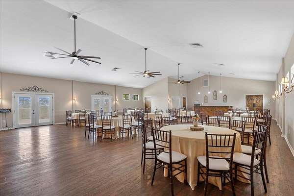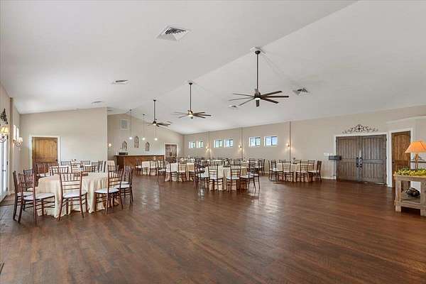 Your Hilltop Haven for Unforgettable Occasions! Boasting unparalleled hilltop views with Lake Bastrop in the distance and surrounded by picturesque loblolly pines; This exceptional property offers a turnkey solution for entrepreneurs seeking to capitalize on the thriving wedding and event market in a prime Central Texas location. The centerpiece of this property is a 5,430 +/- sq ft (Owner) venue, thoughtfully designed with a distinctive Southern flair and built to accommodate a variety of events. The interior features elegant details throughout, creating a warm and inviting atmosphere for guests. A dedicated private chapel provides a beautiful setting for wedding ceremonies and smaller gatherings, enchanted by the glow of beautiful chandeliers and candlelight, amplifying the sense of occasion and reverence. The expansive reception area, with its impressive high ceilings and abundant natural light streaming through windows and French doors, offers a versatile space to host large celebrations, banquets, and corporate events. For efficient management, the property includes a private office with a full bathroom. Guest comfort is prioritized with well-appointed commercial restrooms, as well as, two separate dressing suites, providing dedicated spaces for pre-event preparations. A full kitchen provides ease of convenience for catering and food storage needs. The venue extends outdoors with a 1,400+/- sq ft deck, providing a spectacular setting for outdoor ceremonies, cocktail hours with breathtaking sunset views, or starlit receptions. The beautifully landscaped grounds across the 5+ acres offer numerous opportunities for stunning event setups and guest enjoyment. The property provides proximity to downtown Bastrop, providing accommodation options for out-of-town guests. Offering a short commute to Austin and the Austin-Bergstrom International Airport, makes it easily accessible for both local and destination events. Schedule your private showing today!