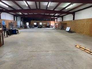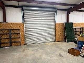 Approx. 50' X 150' warehouse with separate office space with drop ceiling. Electrical inside building w / 110V wiring and access to 220 V. loading dock, 3 roll up doors. 14' eaves. Loading dock on rear.
