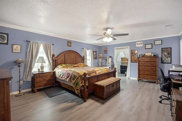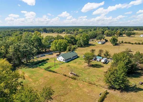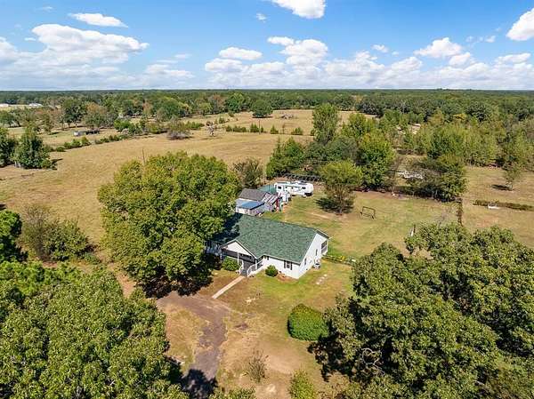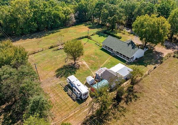 Beautiful 3BR-2BA home on 13.03 ag-exempt acres with pond, cross-fencing, RV site, shop, and screened rear porch. Spacious floor plan with large family room, extra-large walk-in closets, and oversized pantry. Kitchen opens to dining area and laundry room. Home serviced by Tri-Water plus well for outdoor watering and features tankless electric water heater. Signal net Internet available (see Assoc. Docs). Unfinished attic offers storage or potential bonus room. Property includes chicken house with chickens, greenhouse frame, hydroponic grow house, and muscadine grapes. Ideal for cattle, horses, goats, or sheep. Convenient FM-road location with quick access to I-30 and nearby cities. See additional info for negotiable and excluded items.