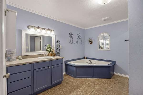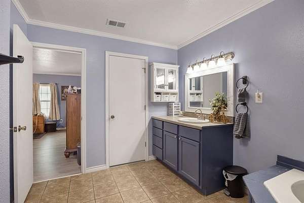 - Decorative Lighting, Double Vanity, Eat-In Kitchen, Kitchen Island, Paneling, Pantry, Tile Counters, Walk-In Closet(s), Wired For Data