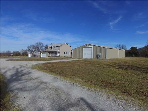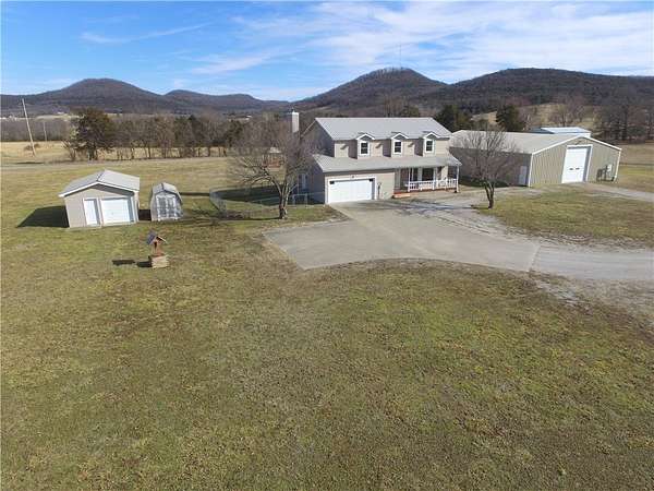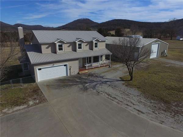 Great Location with Amazing Views! Nice 3BR, 2.5BA home that's 2,246 sq.ft. Just over 3 acre yard, fenced area for dogs, gazebo, 2 level deck on back with patio. 50x70 red iron shop with 2-14x14 doors with opener's, insulated, power, water, drain, bathroom inside, air compressor and zero turn mower stay with the property. Attached garage, detached garage, and storage shed give you plenty of room for all those toys. Located inside Berryville city limits, zoned R-1 residential. Close to shopping, just minutes from Table Rock Lake, Kings River and Buffalo River. Branson MO 45 minutes away, Rogers, Bentonville, Fayetteville all just over an hour away.