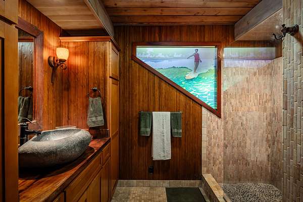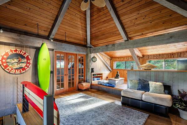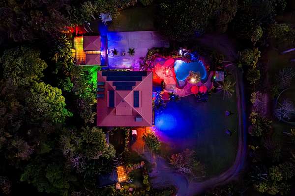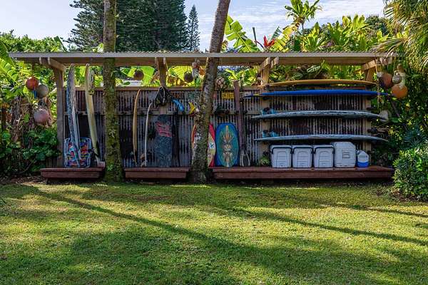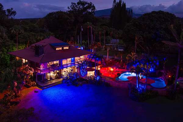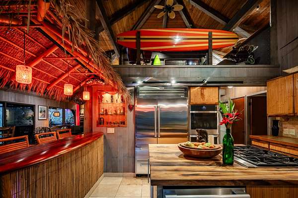 More fun per square foot than any property on Maui. Wake up every day to your own private, resort-style oasis featuring a 25'x40' free-form saline pool with a jacuzzi, water slide, jumping rocks, sauna, outdoor shower, stone fire pit, and tiki bar. When you’re not swimming, jumping, sliding, sweating or otherwise enjoying this tropical 2-acre estate you’ll be embraced by a 5-bedroom, 4-bathroom home with an expansive open floorplan and a warm redwood interior that seamlessly blends indoor and outdoor living. The chef's kitchen is equipped with top-of-the-line appliances, including a Dacor cooktop, GE double oven, Miele dishwasher, wine cooler, and Sub-Zero refrigerator, complemented by custom monkey pod and bamboo cabinets. Luxurious features exist like a stone fireplace, a multi-purpose loft, and a primary suite with a large soaking tub and walk-in shower. The wraparound lanai showcases tropical views and inviting outdoor living spaces. There are impeccably landscaped grounds with fruit trees, garden beds and various additional structures, plus a 12kw net metered solar system for sustainable energy efficiency. Indulge in the ultimate Maui lifestyle with a property that transcends the ordinary. Words and images fall short in capturing the magic of this residence which must be seen to be enjoyed. Discover the unparalleled charm of this exceptional Maui estate.