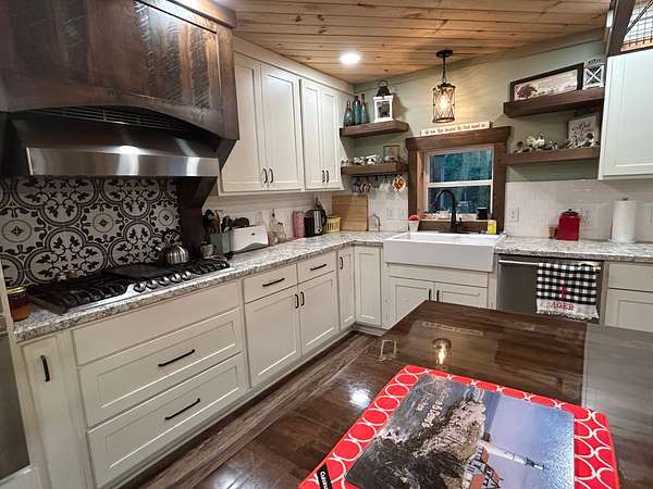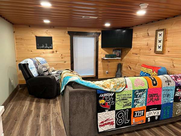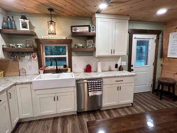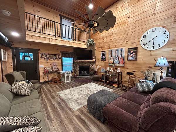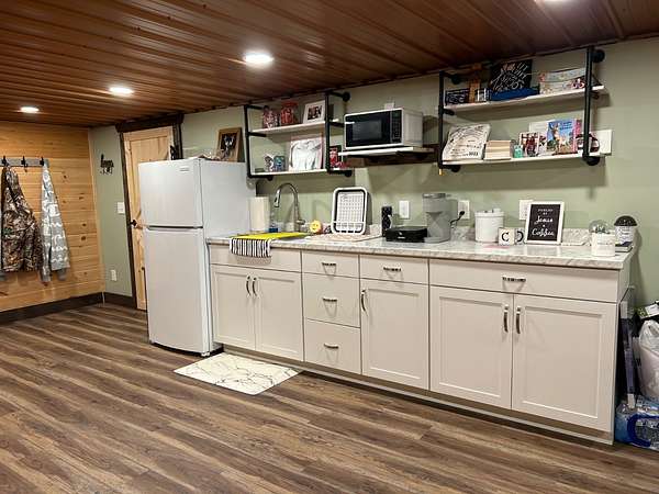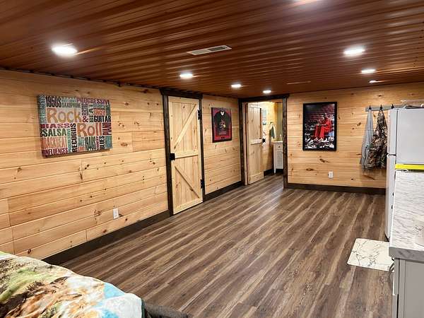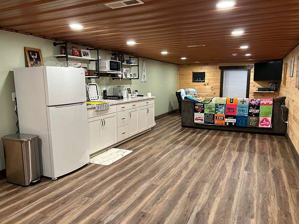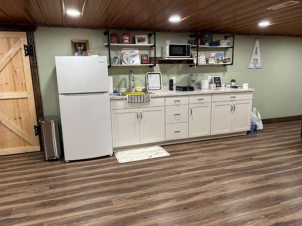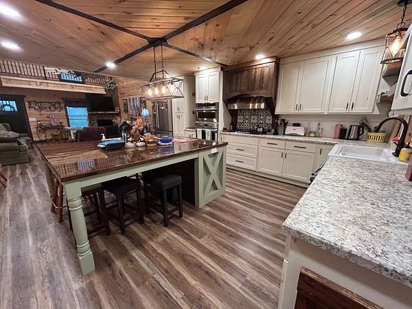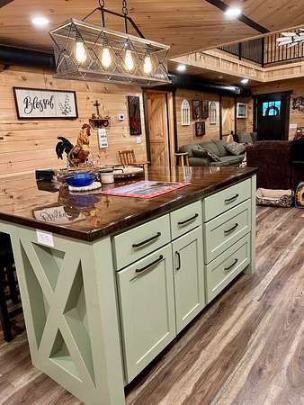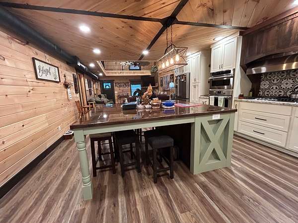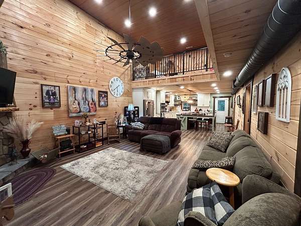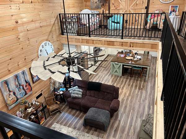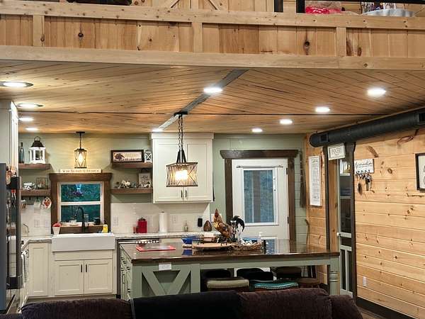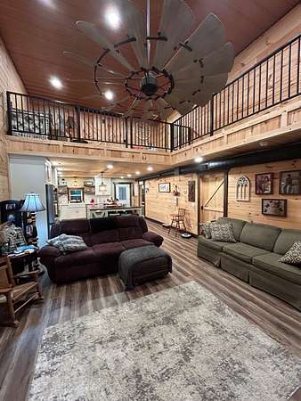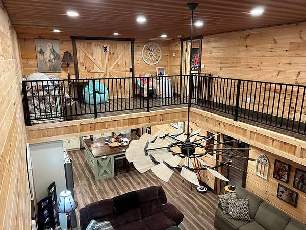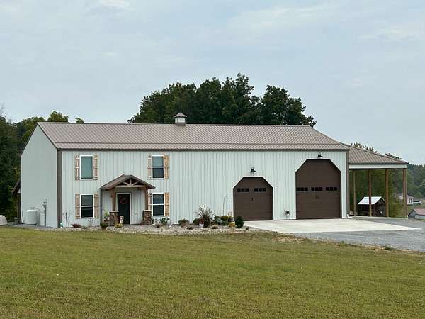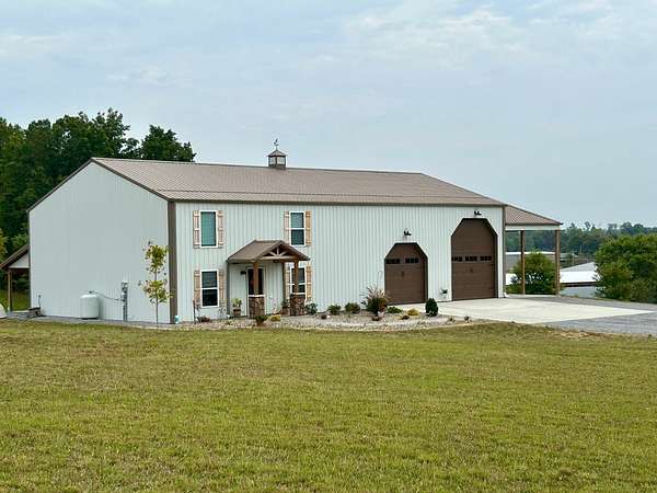 A Must See! Newly constructed Barndo offering 2 separate living quarters and 1600+/- sq ft of garage space for vehicles and/or toys, all under one roof. Main level presents a master bedroom with master bath (that includes an open walk-in tiled shower) connected to a large open walk-in closet. From the master closet, you can access the laundry/mud room, which includes commercial sink and a shower, as well as connecting to the kitchen and garage. An added bonus to this area, just off of the kitchen, is a good sized food pantry/food prep area. The Stylish, very User friendly kitchen offers a gas cooktop, double oven (microwave/oven) combo, custom built cabinetry, farm style sink, and a beautiful family size island with plenty of seating, storage and electric. Flowing from the kitchen to the main living area, which is all open concept, you see the corner gas fireplace, the large western style ceiling fan, along with the wrap-around balcony of the upper level living quarters. The upper level, which is accessible through the garage, is ideal for a young adult/college age child or maybe a guest suite or in-law suite. Upstairs presents a bedroom, full bathroom, sitting/living area along with a kitchen/dinette area...not to mention the view of the open living area from the catwalk. The Garage! 1600+/- sq ft offering 3 garage doors (all sizes approximate); a 12x14 for your RV, a 10x10 would be great for boat/vehicle/ATV's, and a 8x10 maybe more so for yard/farm equipment. Garage also includes a 4x8 storm/safe room and a 10x10 office space. This beautiful home is situated on an open 5+/- usable acres. Room for chickens, livestock and/or pets. You can sit on the open back porch and enjoy all of Kentucky seasons! Location; country living, yet, under 10+/- minutes to dining, shopping, hospital, and jobs...also approximatley 15+/- minutes to Green River Lake!
