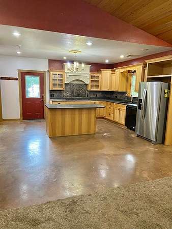 Est $1,579/moRustic 4 bedroom earth contact home sitting on 6.9 Acres M/L , this is a great location not far from town but secluded . Stained concrete flooring, open concept the minute you walk in to a 12 ft. ceiling, great room with gas fireplace, the large Kitchen offers a movable kitchen island , walk-in pantry , double oven ,New refrigerator. Master suite has walk-in closet and bathroom with shower and tub , a large bedroom and bath on opposite side of home will be great for guests .This home offers a great outdoor entertaining area a sidewalk leading from the house to a firepit and seating for those fall gatherings. Well pump is new and and home has a 1000 gallon concrete septic system.