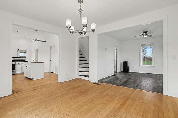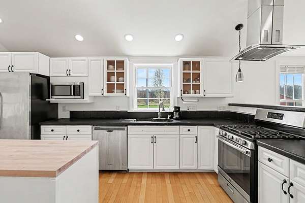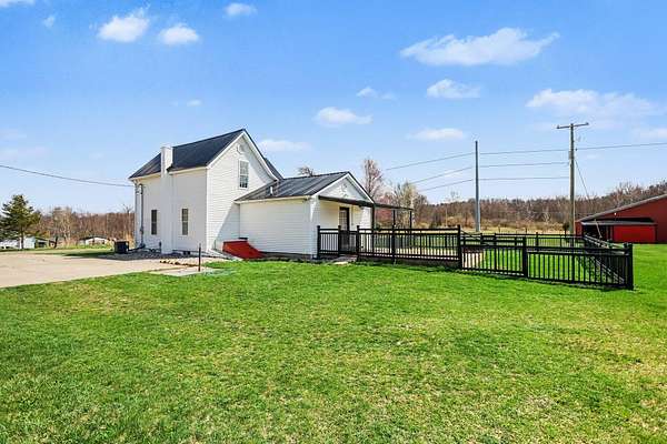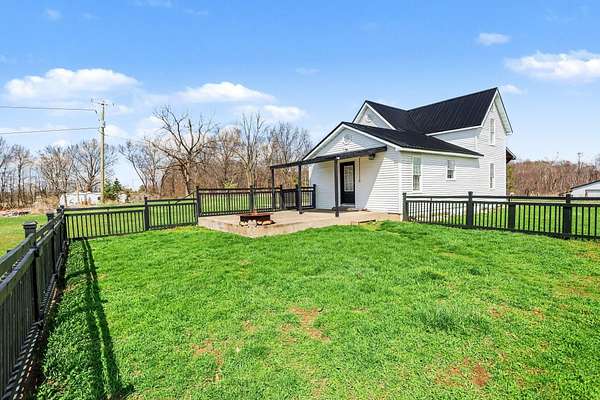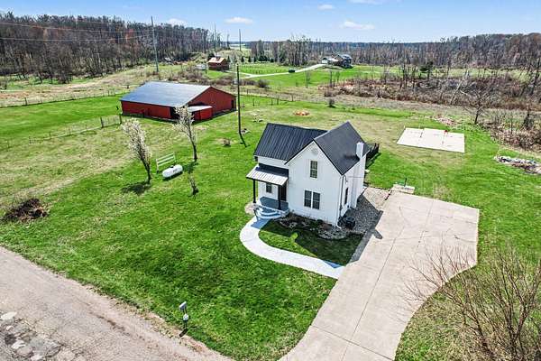 CALL LORI STURDEVANT TO TOUR THIS THREE-BEDROOM, ONE=BATH FARMHOUSE, SET ON 2.4 ACRES. The home features an open concept with many updates throughout. New metal roof just 6 months old. This property offers the perfect blend of country living and functional space. Enjoy the scenic landscape featuring mature trees, natural contours, and frequent wildlife sightings-including deer, creating a truly relaxing setting. A fenced in area directly behind the home, complete with patio for seating & grilling, but also ideal for pets, which adds to the cozy, welcoming feel. Concrete driveway. There is an oversized pole-barn which is an exceptional find, offering endless possibilities for storage, a workshop, hobby space, animals or even future barndominium potential. If you are looking for space, serenity, and versatility this property delivers a unique opportunity to enjoy country living at its best! Call today, don't delay!