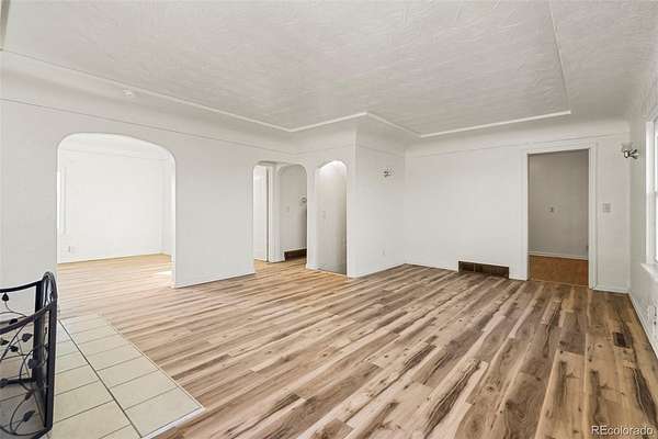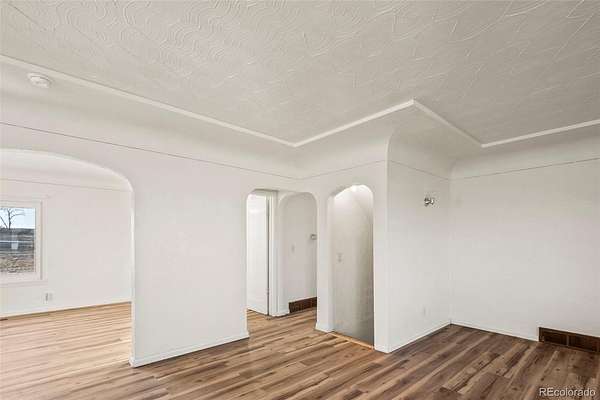 Inside, the home features beautiful ceilings, architectural details, including arched entryways, highlighting the craftmanship of its era. A flexible main-level room provides ideal space for a home office, sitting room, or additional living area.