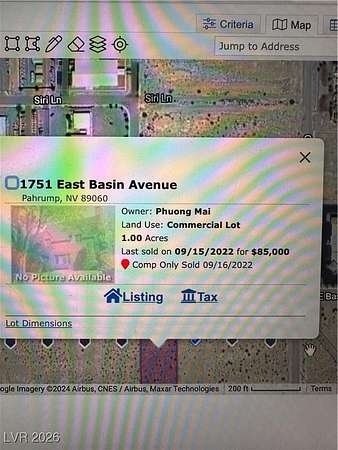 Est $1,380/moPRIME COMMERCIAL LOT a stones throw from Nye County Courthouse and DMV offices. Paved roads and utilities are close to property. Buyer to verify all info. Owner Carry option available.