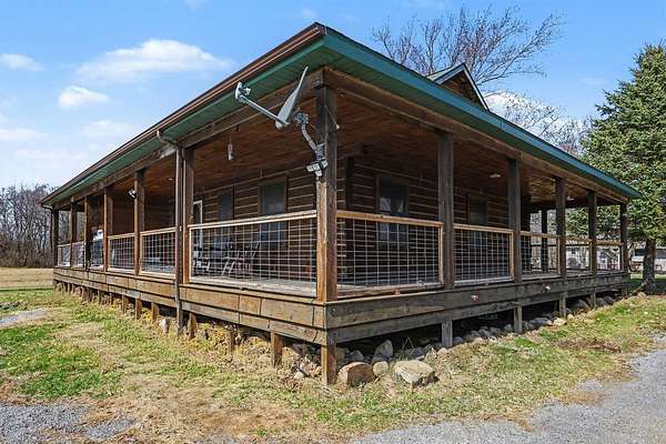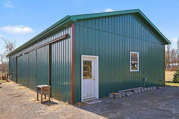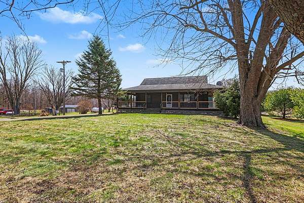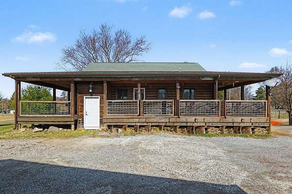 Nestled on peaceful acreage, this charming country log home offers the perfect blend of rustic character and everyday comfort. A welcoming wraparound covered porch invites you to slow down, sip your morning coffee, and soak in the surrounding nature. Inside, the home features soaring vaulted ceilings and warm wood flooring that highlight the open living space. The kitchen flows seamlessly into the living room making it ideal for gatherings and casual entertaining. With two comfortable bedrooms plus a spacious upper-level den or potential third bedroom overlooking the living room, there's flexibility for guests, a home office, or a cozy retreat. The full basement provides abundant storage with built-in shelving, keeping everything organized and out of sight. Outside, the impressive pole barn, built in 2009, is ready for hobbies or livestock and includes three horse stalls and a fenced pasture area. All of this and located in Northwest School District.