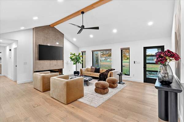 Welcome to 1781 W Riverdale Drive! Set on 3.65 acres, this property has been completely reimagined with a level of detail and finish rarely found. Every element was thoughtfully selected, creating a home that feels both elevated and effortless. Vaulted ceilings and a Modern Flame fireplace anchor the main living space, while wide-plank European white oak flooring extends throughout. The kitchen is both refined and functional, featuring custom Twin Oaks cabinetry, quartz countertops, GE Profile appliances, a Bosch dishwasher, and a walk-in pantry designed for everyday use. The primary suite is private and well-appointed, featuring expansive picture windows, motorized shades, heated tile floors, an oversized 80-gallon soaking tub, and a glass-enclosed shower with Diamon Fusion protection. Clean lines, natural light, and a layout that prioritizes comfort. Two additional oversized bedrooms offer flexibility without compromise. The home's quality extends well beyond the finishes. Andersen windows and doors, R-50 insulation, updated HVAC, a tankless water heater, a water conditioning system, and a fully upgraded well with a new pump and dual pressure tanks reflect a true investment in performance. Outdoor living was designed with the same level of intention. A climate-controlled sunroom, a motorized screened patio, and a gabled entertaining space create a seamless extension of the home. The 32x48 shop mirrors the main residence in both quality and finish. Fully heated and cooled with a finished interior, new doors, and an RV hookup, it offers versatility without sacrificing design. The grounds are equally considered, featuring new landscaping, full irrigation, an arborvitae privacy line, and an existing storm shelter. Located within Nixa Schools and benefiting from Stone County taxes, this is a rare opportunity to own a fully transformed property where quality, privacy, and design have all been carefully aligned.