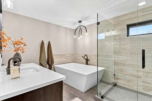 - High Ceilings, High Speed Internet, Quartz Counters, Soaking Tub, Vaulted Ceiling(s), Walk-In Closet(s), Walk-In Shower