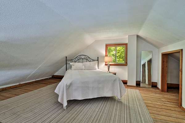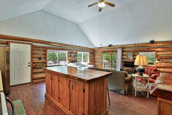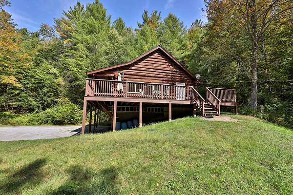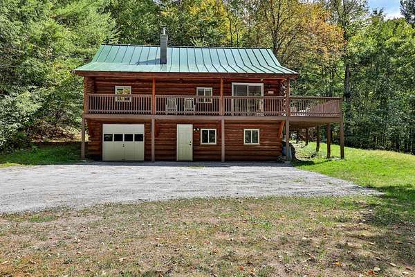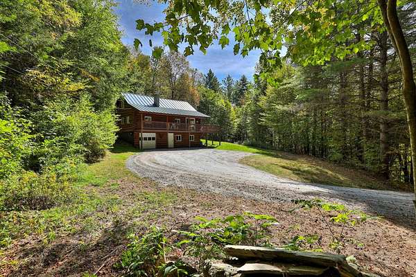 Nestled on 18 private acres along picturesque Blackmer Boulevard, this traditional log home offers the perfect blend of rustic charm and modern comfort. The open floor plan features soaring vaulted ceilings, a classic woodstove for cozy winter nights, and a spacious kitchen with a gleaming live-edge breakfast bar and updated hickory cabinetry. The loft-style primary bedroom overlooks the main living area, while a comfortable guest bedroom and full bath are conveniently located on the main level. A sunny southwest-facing deck and inviting covered front porch provide ideal spaces to relax and take in the surrounding natural beauty. The large unfinished basement with an integrated one-car garage offers excellent storage or expansion potential. Recent updates include a standing seam metal roof (2010), new exterior chinking (2022), new deck railings, fresh exterior stain, and a regraded and graveled driveway (2025). With 18 acres of forest and open land, you'll enjoy peace, privacy, and endless outdoor adventure. Conveniently located near world-class skiing and riding at Killington and Pico, fly fishing on the White River, and miles of scenic hiking and biking trails, this fully furnished and equipped log home is ready for you to move in and start living the Vermont dream. Don't miss this rare opportunity--schedule your showing today.