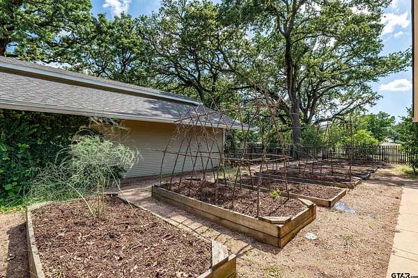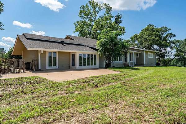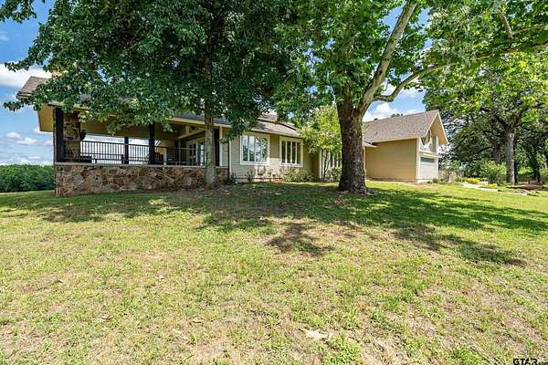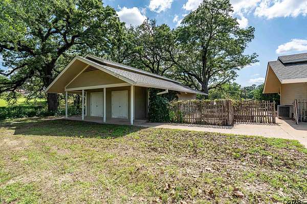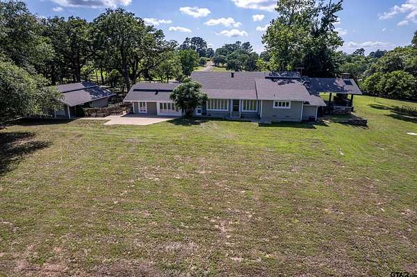 Tucked away on 24+/- rolling, partially wooded acres just minutes south of Tyler, this 3,700 sq ft architectural gem offers a rare blend of privacy, charm, and elevated design. With a unique layout tailored for those who crave something beyond the ordinary, this luxury estate features floor-to-ceiling windows that fill the space with natural light and frame sweeping views of nature in every direction. Inside, you'll find hand-scraped hardwood floors, custom built-ins, brushed nickel fixtures, and a cozy wood-burning stove anchoring one of two spacious living rooms. The home offers three generously sized bedrooms, three full bathrooms, a sunroom, and a formal dining room giving space and flexibility for every lifestyle. Step outside to your own private retreat: an outdoor kitchen, serene covered patio with fireplace, picturesque views, a tranquil pond, and vibrant garden space with raised beds surrounded by a peaceful courtyard. The oversized detached garage provides ample room for vehicles and storage, while a separate outbuilding is perfect for a workshop, studio, or additional storage. Luxury meets functionality in this unforgettable, hard to find, East Texas estate. If you're tired of cookie-cutter and ready for extraordinary, schedule your private showing today.