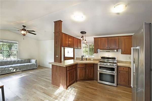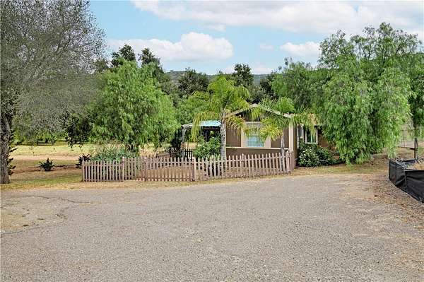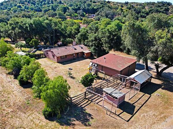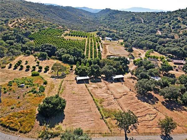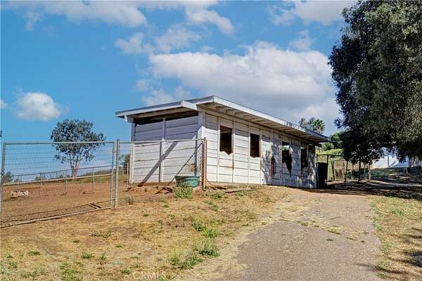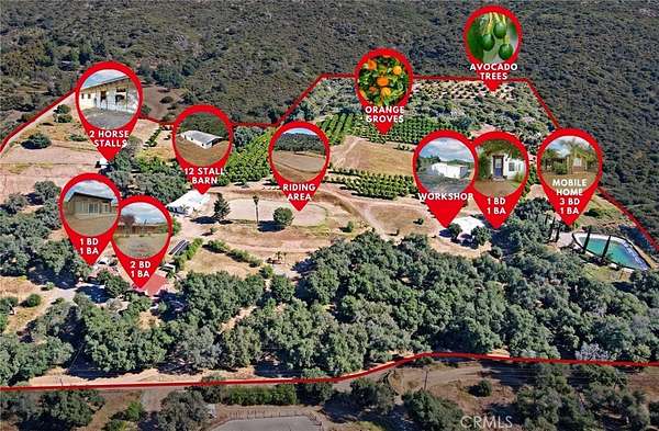 33-acre horse and agricultural ranch in the hills of Escondido with two adobe homes (2 bedroom, 1 bath and 1 bedroom, 1 bath guest house) with their own carved out backyard, a 1 bedroom, 1 bath house, a 3 bedroom, 1 bath manufactured home, and a spacious workshop to store any equipment or vehicles needed to maintain the ranch. The property also has a 2-horse stall, a 12-stall barn, an indoor horse riding carousel, and a large horse riding area. In addition, there's a private well on the ranch powered by solar panels and a large reservoir. There's 5 acres of Valencia oranges and 3 acres of Haas avocados with gravity fed irrigation. Get out of the city and enjoy this beautiful ranch with all its features, especially the views from the top of the property overlooking a lake and other mountains.
