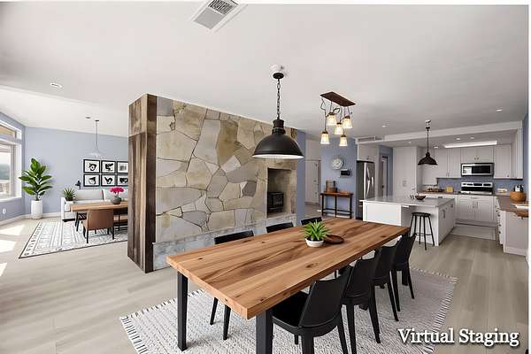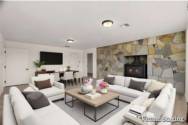 - Forced Air, Heat Pump, Wood, Wood Stove