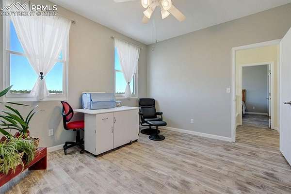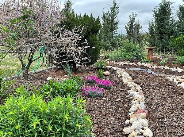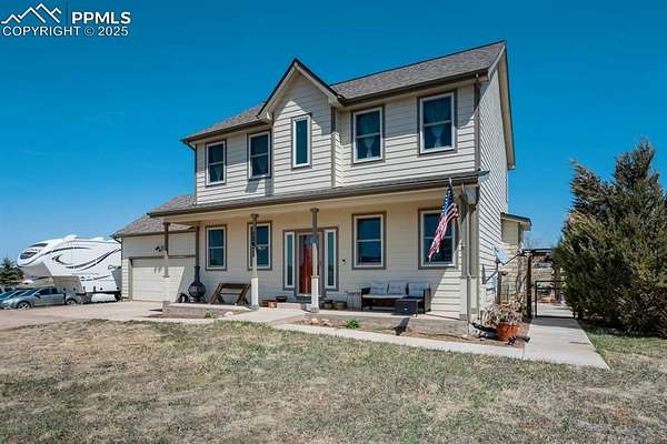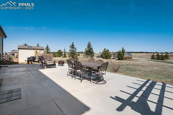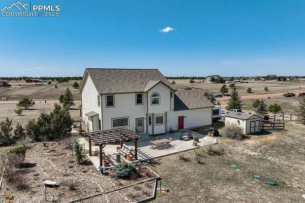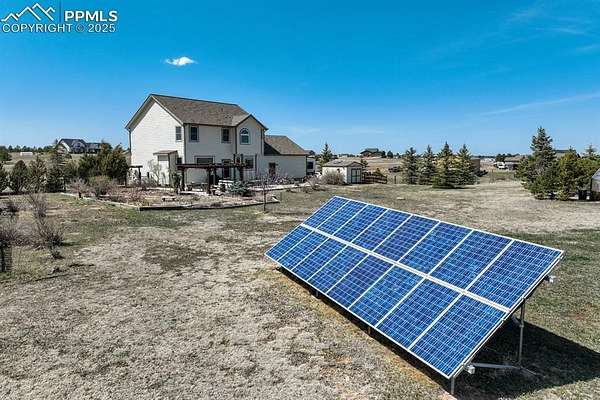 Privacy and peacefulness at its best in Peyton Pines! This beautifully maintained home offers updates, charm & plenty of space inside and out. Walking through the front door, you'll immediately notice the vaulted entryway ceilings, arched doorway to the non-conforming bedroom/office & architectural accents. Moving further into the main level you'll find that the kitchen features soft-close cabinets, granite countertops, glass cooktop with 2 induction burners, 2 radiant burners, keep warm burner, convection oven with warming drawer, touch-less faucet, pantry, built-in wine rack, & breakfast nook. Enjoy the large formal dining area, gas fireplace in the living room, main level powder room, & thoughtful upgrades throughout. Upstairs, the spacious primary suite with coffered ceilings, luxurious 5-piece en-suite, soaking tub with Fibo shower/tub surround (no grout!), & walk-in closet with built-in shelving. Two additional bedrooms & a full bath complete the upper level. The basement offers comfort & flexibility with a wall heater for added comfort, 4-person sauna, under-stair storage, large laundry room complete with a effluent laundry filter, plenty of additional storage, & potential for an additional bedroom and bathroom. | Outside, enjoy a 53x20 concrete patio with a 14x14 cedar pergola. 24x12 heated greenhouse with thermostat, & two solar panels. Fenced in vegetable garden with 13 garden troughs (all irrigated). Extended garage includes built-in cabinets & a 12x10 Tough Shed. Fenced back yard with 4 gates, access to the bridle path & zoned for horses! | Enjoy the private well, septic, electric water heater, propane furnace with owned 500-gal tank, owned home & greenhouse solar panel system, new double-hung windows with lifetime transferable warranty, NEW (2025) roof with class 4 hail impact resistant shingles, & new exterior paint. | Located approx. 35mins to Schriever Space Force Base, 30mins to Peterson SFB, 10mins to shopping & 40mins to Colorado Springs Airport.