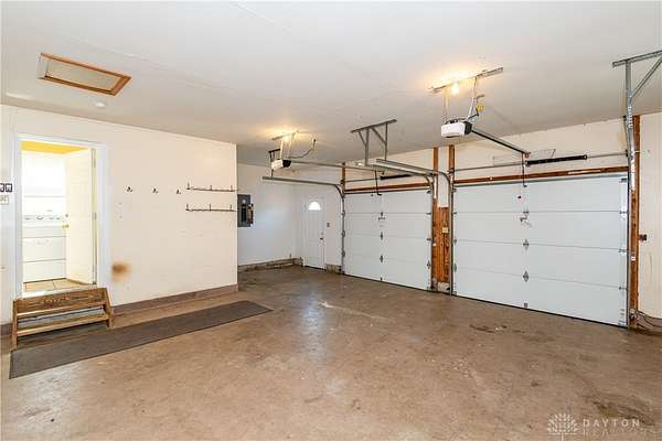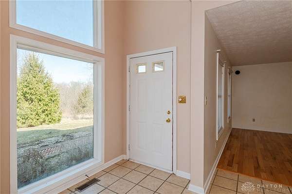 Discover an exceptional residence offering tranquility and modern comforts, perfectly situated on a sprawling four-acre private lot in Xenia. This well-maintained home features a new roof, deck, and garage doors installed in 2025, providing lasting quality, enhanced curb appeal, and long-term peace of mind. Unique architectural details add character throughout, beginning with the classic brick exterior that welcomes you into an inviting foyer featuring a chandelier and an oversized arched window that fills the space with natural light. Hardwood floors throughout the main level add warmth and elegance, while newly installed carpeting on the second level enhances the comfort of the upper living spaces. The spacious kitchen offers ample cabinetry, generous counter space, modern appliances, and views of the surrounding landscape. French doors lead to the new oversized deck, creating a seamless transition to outdoor living and providing the perfect place to enjoy the peaceful natural surroundings. A standout feature of the home is the unfinished walkout basement, offering a blank canvas ready for your personal vision—ideal for creating additional living space, a recreation area, or a custom retreat tailored to your needs. The property also includes a two-car garage and an additional storage building, providing plenty of space for vehicles, hobbies, or equipment. Combining privacy, thoughtful updates, and versatile living space, this exceptional property offers the perfect balance of comfort, nature, and convenience just minutes from local amenities.