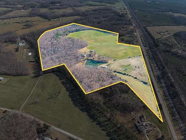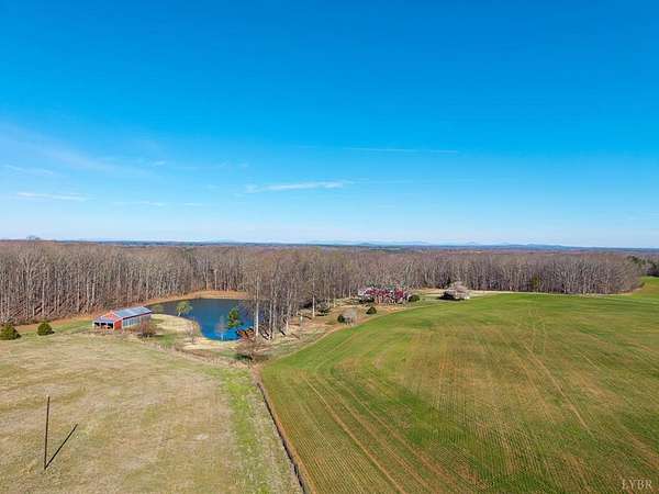 Discover an exceptional rural estate spanning 96.6 acres in Prince Edward County. Built in 1994, this low maintenance brick ranch offers 2,008 finished sq ft with 3 bedrooms and 2 baths. The open great room kitchen flows onto a porch overlooking a scenic 2 acre stocked pond filled with crappie and bluegill. Enjoy three porches, a metal roof, and a private elevated homesite set back along a winding driveway. Interior features include an office, laundry room, and a partial unfinished basement ready for customization. The gently rolling land includes approximately 50 acres of mature hardwoods with hunting trails and 42 acres of open fields that are partially fenced. Outbuildings include a detached 2 car metal shop with a finished apartment, a 3 bay open shop with shed, and a 3 bay equipment building. Convenient to Appomattox, Farmville, Lynchburg, Richmond, and Charlottesville. Ideal for recreation, farming, or peaceful country living.