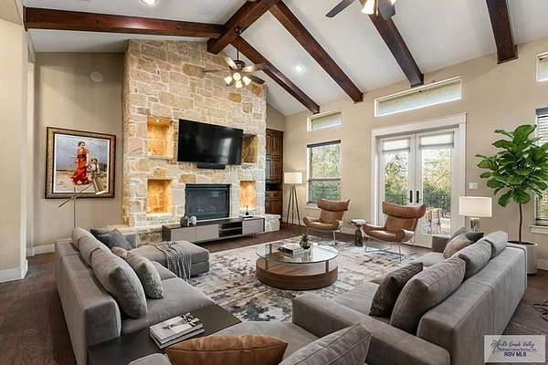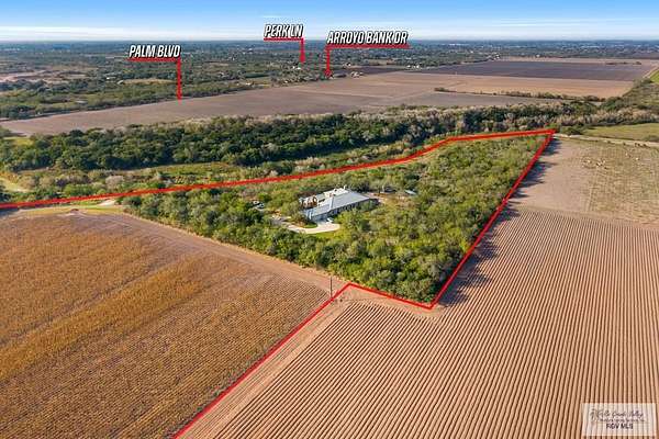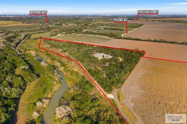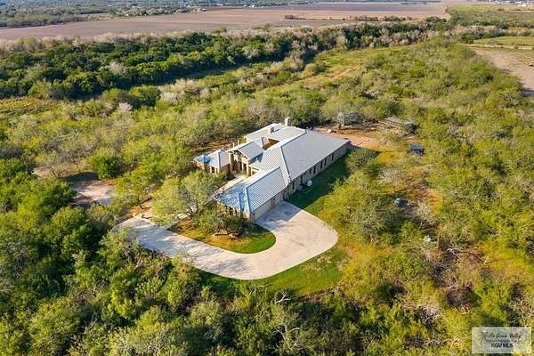 Set on 28.62 private acres along the Arroyo Colorado, this 4,300 sq. ft. Hill Country inspired estate in Harlingen was meticulously crafted by Will Haraway of Haraway Construction. The striking stone exterior and metal roof exude timeless elegance. Inside, the home offers 4 bedrooms, 4 full baths, 1 half bath, and a private office. The fourth bedroom suite opens to a grand courtyard, creating a serene retreat. A chef's kitchen with double islands, tile floors throughout, and a very large central courtyard combine style and function. Additional features include a 3-car garage, foam insulation, whole house generator, and sprinkler system on water well. With Arroyo Colorado frontage and expansive privacy, the property remains conveniently close to town, combining seclusion with accessibility. Open enrollment provides the opportunity to attend HCISD schools, with campuses located conveniently nearby. Expansive views and unparalleled design deliver true South Texas luxury living.