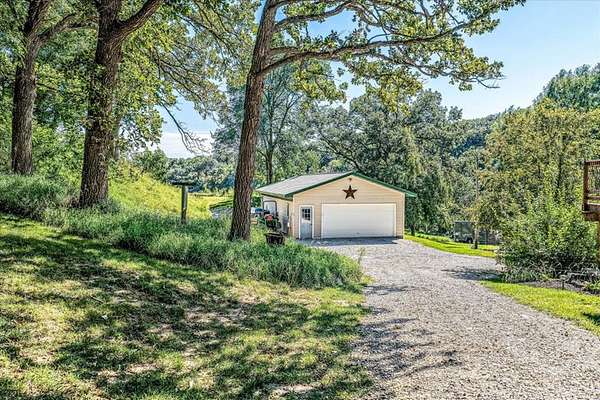 Secluded Loess Hills Paradise on 22.14 AcresDiscover your private retreat nestled within the stunning Loess Hills, a nature lover's dream home on 22.14 acres. This exceptional property offers unparalleled seclusion, surrounded by a lush forest and abundant wildlife. With 16.22 acres enrolled in the Forest Reserve, you'll benefit from lower property taxes while preserving the pristine natural environment.A Haven for Outdoor and Animal LoversBring your horses or other animals and take advantage of the expansive space and tranquil setting. The property features a fully fenced garden and mature fruit trees, inviting you to cultivate your own farm-to-table lifestyle. For your furry friends, a unique and luxurious 6 x 12 heated and cooled dog kennel provides ultimate comfort.Charming Home with Modern ComfortsThe cozy two-bedroom, 1.75-bath residence is thoughtfully designed for comfortable living. The home boasts a convenient main-floor laundry, and the main bathroom includes a relaxing whirlpool tub. The primary bedroom features a private 3/4 bath. Step outside onto the beautiful deck, perfect for enjoying your morning coffee while taking in the serene forest views. A walk-out basement offers additional living space and easy access to the outdoors.Ultimate Workshop and StorageCar enthusiasts and hobbyists will be captivated by the 24 x 56 heated garage. This impressive space is every homeowner's dream, complete with ample built-in shelves and cabinets for all your tools and projects.Recent Updates and Key FeaturesThis well-maintained home has seen recent upgrades, including a new roof in 2024, as well as newer flooring and fresh paint throughout, ensuring a move-in-ready experience. The property has already completed the time-of-transfer inspection, providing a smooth and simple transaction.This is a rare opportunity to own a peaceful sanctuary with modern amenities and incredible outdoor features. Schedule your private tour today--this unique Loess Hills gem won't last long!