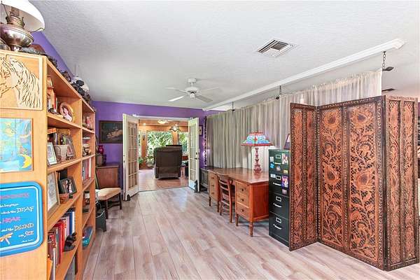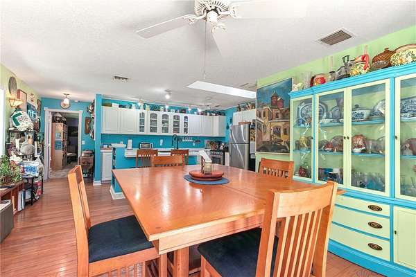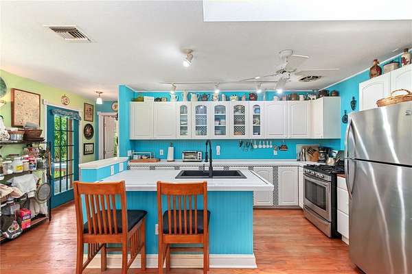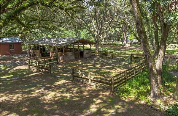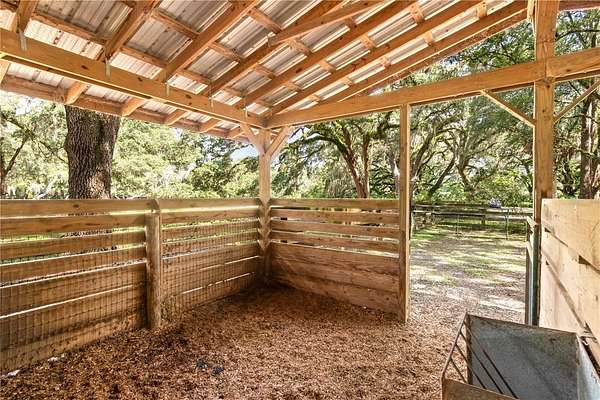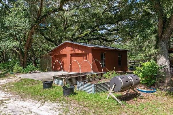 Tucked between the charm of Ocala and the energy of Gainesville, this 4.5-acre retreat in Citra is the perfect canvas for hobby farmers, homesteaders, or anyone seeking a slower pace in a private country setting. Tucked down a quiet, unpaved lane, this custom-built 2-bedroom, 2-bath home offers nearly 2,000 square feet of thoughtfully designed living space. Light and bright, the home invites the outdoors in through expansive windows that frame sweeping views of the surrounding countryside. The living area serves as a true focal point, where picture windows span two walls, highlighting the landscape while warm wooden tray ceilings add depth and character. A bonus of built-in storage enhances the room's functionality. For those who enjoy cooking, the kitchen is well-equipped with plenty of cabinet storage, tile countertops, stainless steel appliances including a gas range, and a center island. Outdoors is where the property truly shines! Fenced and zoned A-1, the farm is well-suited for a multitude of uses including small livestock or equestrian use. A 2-stall barn is established with plenty of space for an additional 2 or more stalls. An additional shed, workshop, green house, and a cabana offer versatile utility with ample opportunity for further customization. Gentle shade can be found throughout the property from mature trees, including stunning oaks and some fruit trees. With a 2-car garage and an additional carport, there's room for equipment, trailers, or visitors. Whether you're dreaming of farm-fresh mornings, space to grow, or just a quiet country backdrop with proximity to major cities, this property blends lifestyle and land with plenty of potential to make it your own.