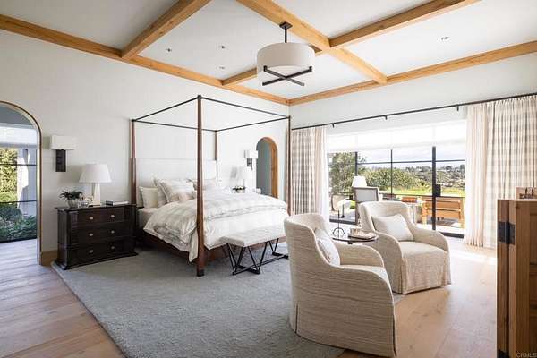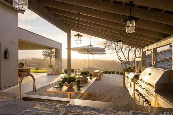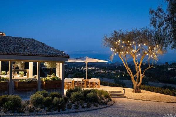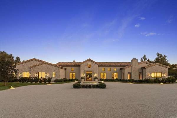 A masterful expression of timeless French country elegance, 17845 Via De Fortuna is a newly reimagined estate, meticulously rebuilt from the ground up to reflect the artistry and craftsmanship of a historic European manor while embracing a transitional design that seamlessly blends centuries-old authenticity with modern sophistication. Set on 3.66 acres in the prestigious Rancho Santa Fe Covenant, this 10,363 sq. ft. architectural masterpiece boasts 5 bedrooms, 5 full and 3 half baths, including a dedicated office and detached guest house. From the moment you arrive, the estate's hand-selected antique barrel roof tiles, sourced from the South of France and aged up to 400 years, signal an extraordinary level of detail and provenance. Antique oak beams, salvaged from historic European farmhouses, lend warmth and character to the interiors, while hand-forged steel-framed windows and doors flood the home with natural light. The gracious great room, anchored by a custom fireplace lined with reclaimed black firebrick in a herringbone pattern, flows effortlessly into the exquisite Christopher Peacock kitchen, where La Cornue and Miele appliances, hand-painted cabinetry, and polished Afyon white marble countertops create a space that is as functional as it is breathtaking. Throughout the home, carefully curated design moments elevate the experience--from the crescent moon cutout on the pool bathroom door, a nod to old-world charm, to the boutique-style closets that evoke the feeling of a private showroom. The primary suite is a serene escape, offering a spa-inspired bath wrapped in Michelangelo marble, a deep soaking tub, and sweeping views of the lush gardens beyond. The outdoor spaces are a dream come true, where the estate's natural beauty comes to life. A reclaimed French village water basin turned fountain and the zero-edge pool and spa with the picturesque backdrop of the majestic Black Mountains create an unparalleled sense of tranquility. Framed by mature olive and fruit trees, the grounds offer a private sanctuary, with custom lighting enhancing the estate's romance at twilight. The outdoor kitchen, featuring a Kalamazoo grill, is perfect for al fresco dining under the stars, while a porch swing tucked behind the guest house invites moments of quiet reflection. The estate is offered fully furnished, with each piece thoughtfully curated to complement the home's aesthetic and elevate the living experience. Every detail, both grand and intimate, has been carefully designed to offer a lifestyle of timeless luxury, where old-world charm and modern comforts harmoniously coexist. With state-of-the-art technology, including Lutron smart home automation, owned solar, Tesla backup batteries, and a comprehensive security system, this estate delivers unparalleled functionality alongside its exquisite design. Located just minutes from Rancho Santa Fe Village, world-class golf courses, equestrian trails, and the stunning beaches of Del Mar, this home offers the ultimate in luxurious living, where every moment feels like a retreat.