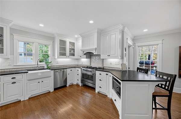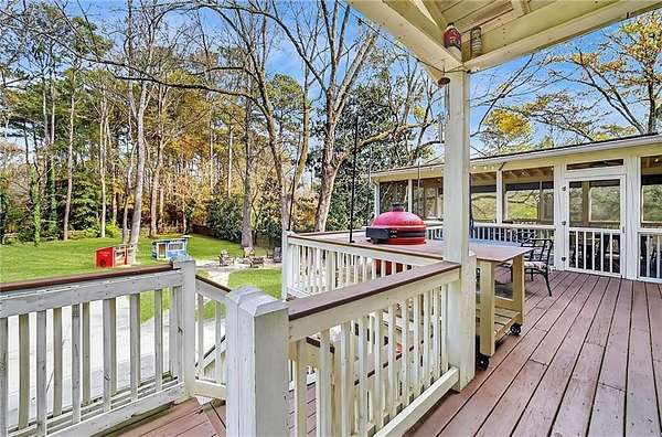 Stunning and completely renovated, this exceptional residence is situated on an extraordinary 3.2-acre estate lot in the heart of Morningside, offering the advantage of lower DeKalb taxes while residing within the highly coveted Morningside Elementary School District. This remarkable property presents a rare opportunity to own significant acreage within the City of Atlanta. Meticulously designed living spaces feature an elegant open-concept floor plan with pristine hardwood floors, a sophisticated eat-in kitchen adorned with soapstone countertops, inset cabinetry, and premium stainless steel appliances. The spacious family room seamlessly transitions to the breakfast room and kitchen, and opens to an expansive screened-in porch, creating an ideal setting for year-round enjoyment. Additional main-level spaces include a formal dining room, inviting living room perfect for entertaining, and a dedicated office/den accented by an impressive exposed brick wall. The upper level boasts an exquisite primary suite offering a spa-inspired bath with a double vanity and an elegantly tiled marble shower. A thoughtfully designed mudroom provides the perfect landing area for everyday essentials including bags, backpacks, sports gear, and outerwear. The finished terrace level expands the home's versatility with a generous additional living area, flexible rooms ideal for a home gym, hobbies, or recreation, a convenient bar/sink setup, and an excellent layout for an in-law, Au Pair, or teen suite with easy walk-out access to the expansive backyard. Outdoor living is truly exceptional, featuring 3.2-acre estate lot, a substantial screened porch designed to accommodate both living and dining areas, complete with ceiling fans, and direct access to an open deck perfectly suited for grilling and alfresco dining. The sprawling backyard is cleared, fenced, and complemented by additional wooded acreage extending beyond the fence line, offering both beauty and privacy. Additionally, this home features a whole-house generator, allowing you to enjoy full electrical functionality during a power outage, work from home, cook, watch TV, and never miss a beat while enjoying uninterrupted comfort. Gated parking includes a large parking pad capable of accommodating multiple vehicles with ease. This is an extraordinary and rare opportunity to claim a significant stretch of land in one of Atlanta's most distinguished and desirable neighborhoods.