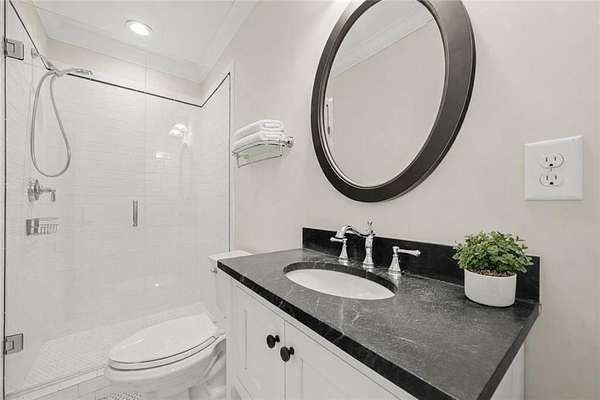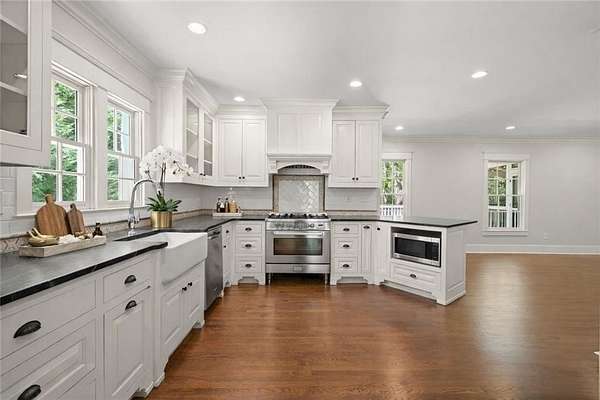 Stunning and completely renovated, this exceptional residence is situated on an extraordinary 3.2-acre estate lot in the heart of Morningside, offering the advantage of lower DeKalb taxes while residing within the highly coveted Morningside Elementary School District. This remarkable property presents a rare opportunity to own significant acreage within the City of Atlanta. Meticulously designed living spaces feature an elegant open-concept floor plan with pristine hardwood floors, a sophisticated eat-in kitchen adorned with soapstone countertops, inset cabinetry, and premium stainless steel appliances. The spacious family room seamlessly transitions to the breakfast room and kitchen, and opens to an expansive screened-in porch, creating an ideal setting for year-round enjoyment. Additional main-level spaces include a formal dining room, inviting living room perfect for entertaining, and a dedicated office/den accented by an impressive exposed brick wall. The upper level boasts an exquisite primary suite offering a spa-inspired bath with a double vanity and an elegantly tiled marble shower. A thoughtfully designed mudroom provides the perfect landing area for everyday essentials including bags, backpacks, sports gear, and outerwear. The finished terrace level expands the home's versatility with a generous additional living area, flexible rooms ideal for a home gym, hobbies, or recreation, a convenient bar/sink setup, and an excellent layout for an in-law, Au Pair, or teen suite with easy walk-out access to the expansive backyard. Outdoor living is truly exceptional, featuring 3.2-acre estate lot, a substantial screened porch designed to accommodate both living and dining areas, complete with ceiling fans, and direct access to an open deck perfectly suited for grilling and alfresco dining. The sprawling backyard is cleared, fenced, and complemented by additional wooded acreage extending beyond the fence line, offering both beauty and privacy. Additionally, this home features a whole-house generator, allowing you to enjoy full electrical functionality during a power outage, work from home, cook, watch TV, and never miss a beat while enjoying uninterrupted comfort. Gated parking includes a large parking pad capable of accommodating multiple vehicles with ease. This is an extraordinary and rare opportunity to claim a significant stretch of land in one of Atlanta's most distinguished and desirable neighborhoods.
