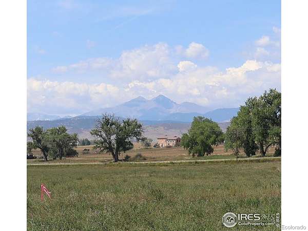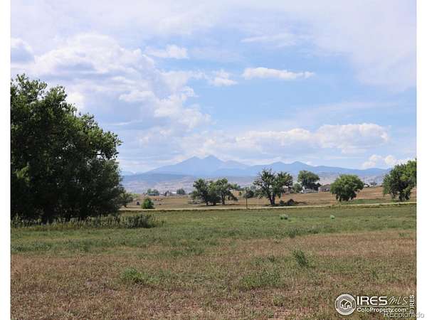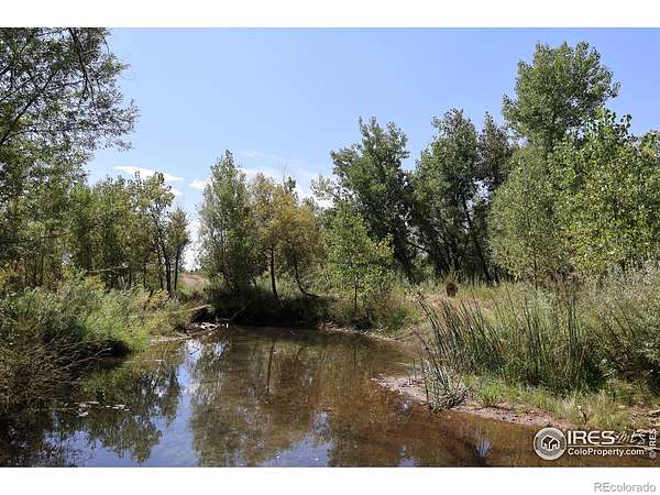 First time ever offered as a buildable parcel. 35 acres of peaceful country sanctuary with unobstructed spectacular Rocky Mountain views, a flat building envelope and the distinction of having the Little Thompson River meander through your property bringing abundant wildlife viewing opportunities. Paved driveway to your homesite. Fantastic parcel for having livestock, creating an equestrian focused estate or just tranquil soothing space surrounded by nature. This parcel is part of the future River custom home subdivision that has a total designation of 63% conservation easement to preserve unaltered habitat and serenity for all. No Metro taxes and not part of an HOA. Zoned AG. Alfalfa grows on a portion of the property perfect for grazing, possible cutting and baling or leave alone in its current state for local fauna and pollinators. Water rights to irrigate are available, ask agent for more info. A black metal fence will be installed on the property. This lot is conveniently located about two minutes to Highway 287, five minutes to Berthoud and nine minutes to Longmont. The land parcel comes with a credit of 2.2 CBT shares to be utilized toward raw water requirements for the Little Thompson Water District. Hawks, eagles, deer, elk, pollinators, fish, foxes and more visit the property. The building site has picturesque mountain views with soul inspiring sunsets; the calm of the river's flow babbles in the distance. Option to also put outbuildings or arenas on the conservation area for livestock/agricultural use. Enjoy summer Campfires looking up at the dark starry sky with an inspiring depth of the nighttime heavens. High speed fiber optics is being brought to the property. This unparalleled offering is the perfect blend of Colorado natural beauty and serenity, premium custom build living and close to Berthoud's amenities and community events. Don't enter property unless with Agent they have set up a showing due to construction.