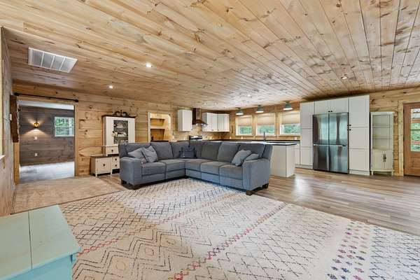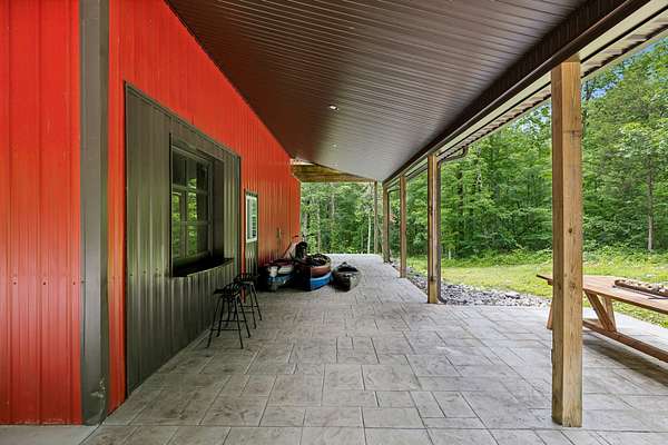 Never has big land, barndominiums and airbnbs been more popular and this is your chance to get all 3 in 1! Check out this 3000+ sf barndo on 45 acres with a separate tiny home style apartment with full living quarters. Whether you're looking for a place where 3 generations can live together comfortably, the perfect place for entertaining large groups or a great house hacking/income producing property this is your opportunity! This huge barndominium has a total of 3 kitchens, 3 living areas, 3 bathrooms, 3 bedrooms, 3 large porches and 2 decks. With full and oversized living quarters downstairs, upstairs and in the apartment this really is the place where parents, older kids and grandparents can live together while still having their separate space. Downstairs is an entertainers dream with stained concrete floors, a kitchen with lots of cabinets, wet bar, large gathering areas and a bar top with a glass garage door that opens to an outdoor bar top so everyone can stay connected inside and out. The main living area has a great open concept and a kitchen with stainless appliances, island, farmhouse sink, leathered granite countertops with lots of cabinetry. The large master bedroom features a hidden gun rack and bathroom with a tiled shower and a hidden room.