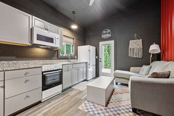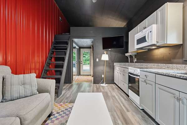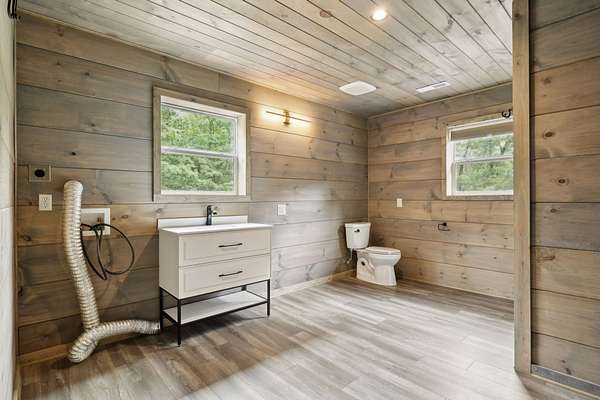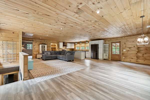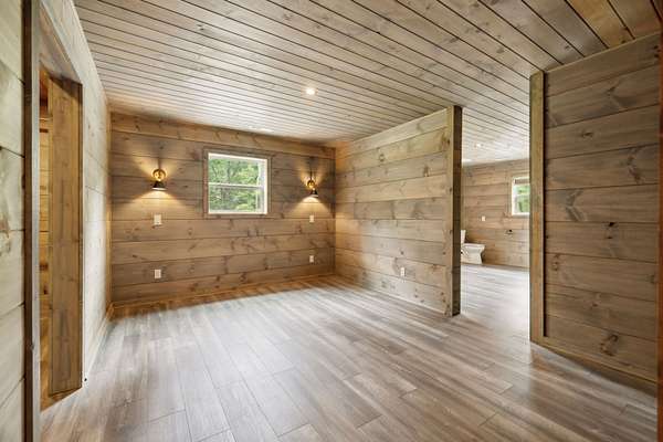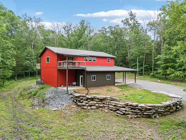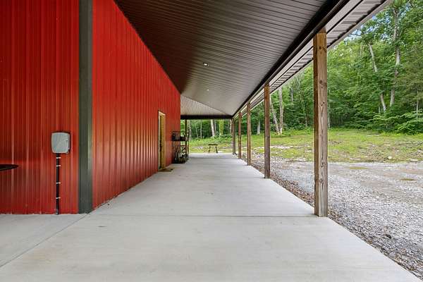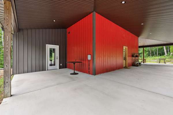 Never has big land, barndominiums and airbnbs been more popular and this is your chance to get all 3 in 1! Check out this 3000+ sf barndo on 45 acres with a separate tiny home style apartment with full living quarters. Whether you're looking for a place where 3 generations can live together comfortably, the perfect place for entertaining large groups or a great house hacking/income producing property this is your opportunity! This huge barndominium has a total of 3 kitchens, 3 living areas, 3 bathrooms, 3 bedrooms, 3 large porches and 2 decks. With full and oversized living quarters downstairs, upstairs and in the apartment this really is the place where parents, older kids and grandparents can live together while still having their separate space. Downstairs is an entertainers dream with stained concrete floors, a kitchen with lots of cabinets, wet bar, large gathering areas and a bar top with a glass garage door that opens to an outdoor bar top so everyone can stay connected inside and out. The main living area has a great open concept and a kitchen with stainless appliances, island, farmhouse sink, leathered granite countertops with lots of cabinetry. The large master bedroom features a hidden gun rack and bathroom with a tiled shower and a hidden room.