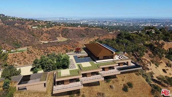 Development Opportunity. A triumph of modern architecture, masterfully conceived by the esteemed Walker Workshop, whose visionary designs have captivated the world. Standing proudly atop a majestic mountaintop, this 17,500 SF residence is an unparalleled work of art, the only one of its kind. Prepare to be mesmerized by the panoramic 270-degree views that stretch as far as the eye can see, with a breathtaking 96' wide opening that provides an uninterrupted vista of the entire Los Angeles landscape. A true marvel of engineering, the structure seems to defy gravity, effortlessly floating above the city below. With a discreet lower level that harmoniously blends into the natural surroundings, this property offers a private sanctuary for those who seek respite from the bustle of city life. Bathed in natural light that spills through the perimeter, the lower level reveals stunning vistas of downtown to the east and the Pacific Ocean to the west. A tropical water garden gracefully cuts through the building, leading to a sunken courtyard that evokes a sense of tranquility and serenity. Every detail has been meticulously considered, resulting in a harmonious balance between nature and architecture that is truly awe-inspiring. This remarkable property can be delivered RTI (permits ready to issue).