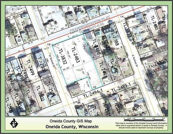 From intersection of Hwy 45 and Hwy 32, take Superior St to fire number 1785. Oneida Village Sign still on property