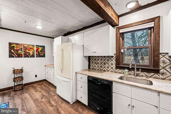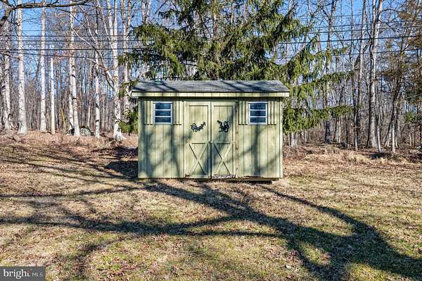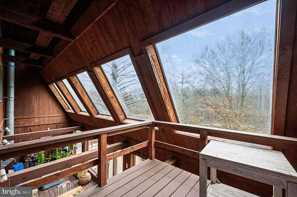 Set on more than 5 beautifully landscaped and wooded acres bordering the Unami Creek, this one-of-a-kind Milford Township property offers a rare combination of privacy, natural beauty, and innovative energy-conscious design. Tucked along a quiet rural road, yet just minutes from Quakertown shopping, restaurants, the PA Turnpike, and Fox Hollow Golf Club, this is a home you truly need to experience in person to appreciate. Unlike anything else on the market, this 3-bedroom, 2-bath home was designed as a passive solar heat residence, featuring a dramatic two-story solarium along the south wall that helps circulate natural warmth throughout the home. A double-roof and double-wall system, extra-thick insulated east and west walls, and a cast-iron wood-burning stove all contribute to the home's remarkable efficiency and distinctive character. Inside, the first floor offers a spacious living room, dining area, full bath with laundry, basement access, and a remodeled kitchen layout that now opens the main living space for a more modern, airy flow. Upstairs, you'll find three bedrooms and a second full bath, including a primary bedroom with a large walk-in closet and sliding door access to a balcony overlooking the solarium. The full basement is exceptionally dry and provides abundant storage, shelving, and a water conditioning system. An oversized garage includes a workbench area, an overhead storage, and extensive shelving. Outside, a large deck overlooks the stunning grounds, which were lovingly planted with a wide variety of mature trees and unique specimen plantings, including Redwood trees.