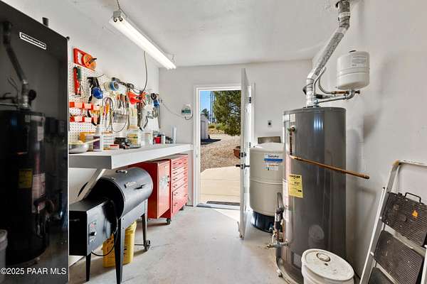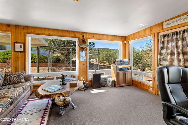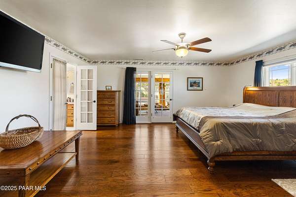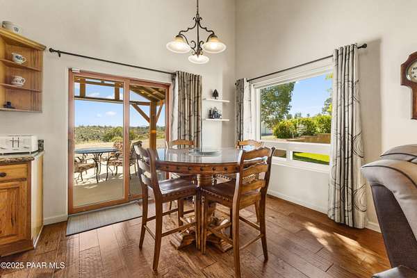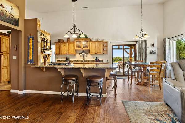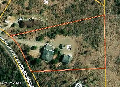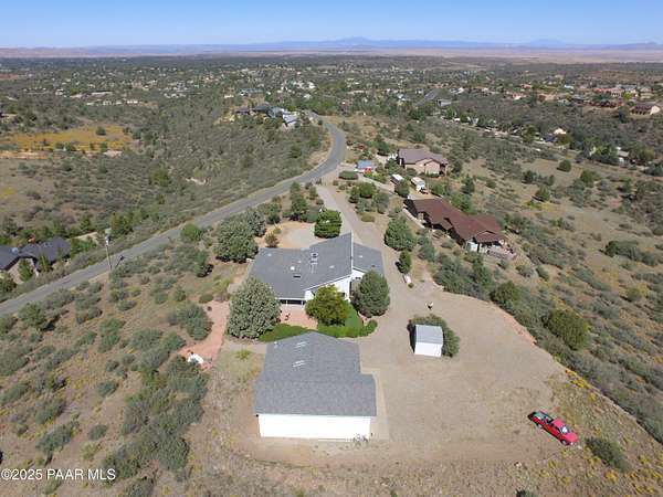 Dreaming of an amazing property with jaw-dropping views from each of its four patios? This home is warm, comfortable, offering peace and quiet along with with great neighbors. Add in the large RV garage with another two-car garage and shop alongside it, and you just might have the perfect Prescott property! But wait, the cherry on top is that this custom built home sits on 2.52 acres backing to State Land, and is still only 10 minutes to shopping. This home has been maintained to the nines. There is no HOA, and it sits on a dead-end street.Enter on the long circular driveway that sets the home back from the road, to the landscaped front yard and walkway to the front entryway. The vaulted ceilings and wood floors provide a warm welcome into the home. The granite kitchen counter tops and custom hickory cabinets create a chef's kitchen with wall convection oven/microwave, and cooktop. Stainless steel fridge and dishwasher. Bar stool seating at the peninsula countertop, the Great Room with wood burning stove, and a breakfast nook, with access to a gazebo covered patio make this the hang out spot for the entire family.The master bedroom is spacious and has an ensuite with dual sinks, and a newly remodeled walk-in shower. Access to a heated and cooled Arizona room from the master bedroom adds to the spaciousness of this area. There is another Arizona room adjacent to this one, wired for a spa that also has access from the Great Room.Outside, the turf backyard has another patio with views of Granite Mountain and beautiful Arizona sunsets. There are patios with wonderful views at all four points of the compass on this home.The large 1500 sq.ft. detached garage is a deep two car with plenty of room for other toys and a workshop area that comes with an 80 gallon 5hp compressor. The RV garage has a 12' roll up door and is nearly 40' deep.Outside the garage is very large flat area with plenty of extra parking for guests, trailers, or toys.Owners have recently replaced the well pump and pressure tank, water heater and more. Detailed records available.