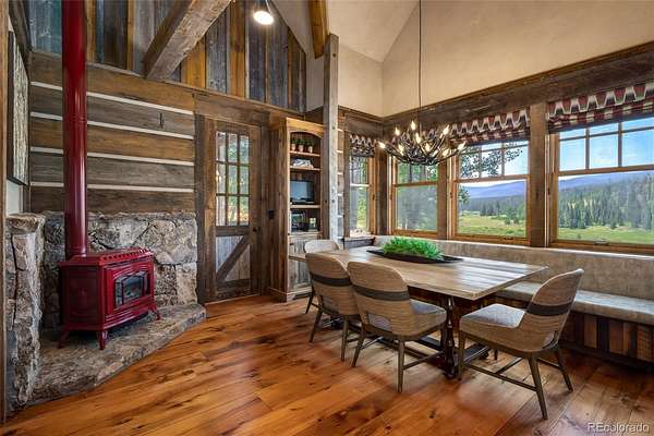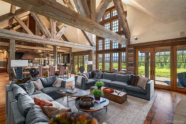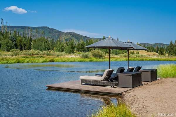 Stunning Mountain Modern Rustic Estate on private Emma Lake, bordered on three sides by Routt National Forest, just below Lynx Pass. This incredible 155 acre property boasts a 5258 SF, 5 bedroom, 7 bathroom main residence that was featured in Architectural Digest and Mountain Living Magazine. Upon stepping into the home, take in the unmatched craftsmanship of this residence. The great room stuns with vaulted ceilings, reclaimed beams, massive stone fireplace, and floor to ceiling windows that let in the incredible panoramic view of Emma Lake and the surrounding mountains. The home has been recently updated throughout to include custom kitchen cabinetry, appliances, lighting throughout, primary bathroom renovation, custom bar room complete with wine column and ice maker, stunning tile work, and too many designer touches to list. Take in the views with a brand new Trex deck that overlooks the lake. Cozy up at night to fire pit area which is steps from the hot tub. Spend days enjoying Emma Lake, which sits below the home. Steps have recently been installed for easy access to the lake where you will find a dock, sandy beach area, and outoor furniture perfect for enjoying a lazy day on the water. Lake has new aeriation system, and is fully stocked with trout. Caretaker residence is a 1518 SF 2 bedroom home that has been built with the same architectural details as main residence. Outdoor enthusiasts will love the separate garage that was constructed in 2023; heated space is perfect for storing snow mobiles, ATVs, & more! Morrison Creek flows through the property, and wildlife abounds year-round! This incredible property features access to miles and miles of trails, hunting, mountain biking, snow-mobiling and hiking, & private ski pro lift for winter recreation. Properties like this surrounded by open space, live water running through it, meadows, private Lake with secluded architectural pleasing home plus freestanding caretaker home are a super rare find in this area.
