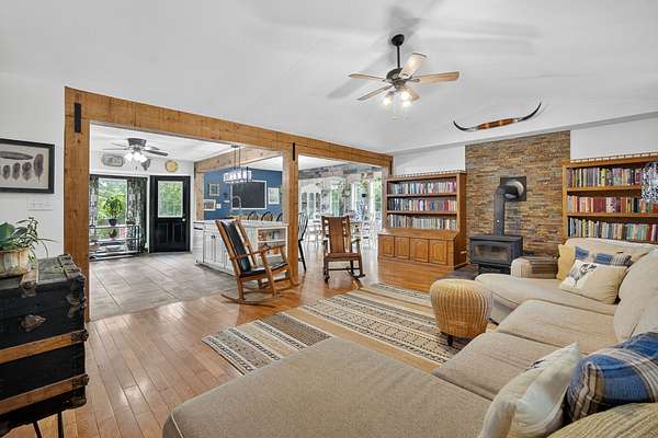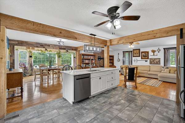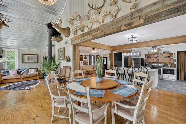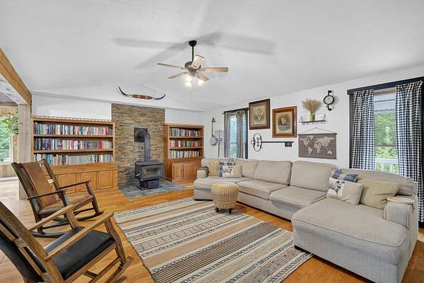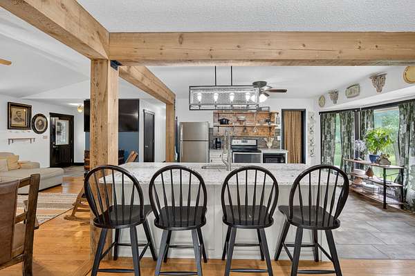GET AWAY FROM IT ALL! Come take a look at this wooded retreat less than an hour from Des Moines! This ranch home was built in 1995, sits on 2 acres & provides over 2800 total living sq ft (main + lower)! The main floor features open flow from front living room -- to the kitchen -- to the dining area/back living area! Thick rustic pillars ground the space! The country chic kitchen has tile floors, quartz counters, open shelving, pantry closet & a sizable island with breakfast bar seating! The primary bedroom has two walk-in closets and a refreshed private full bath with dual sink vanity, shower & jet tub! The main level also features 2 more bedrooms, a full hall bath & main floor hallway laundry closet! The lower level offers a family room, a non-conforming 4th bedroom with walk-in closet & a 3/4 bath. There's a storage room & a separate utility room, too! 2-car tuck under attached garage! Outside, you're surrounded by timber in all directions! The lot provides a few flatter areas that allow for flexible usage: small hobby farm, future garage/shop space, gardens, play area, etc! NO COVENANTS! A chicken coop & open faced shed are included! Located just NW of Chariton & close to Osceola, Indianola, Knoxville, & Des Moines area! All information obtained from Seller & public records.