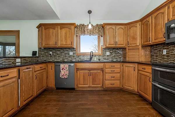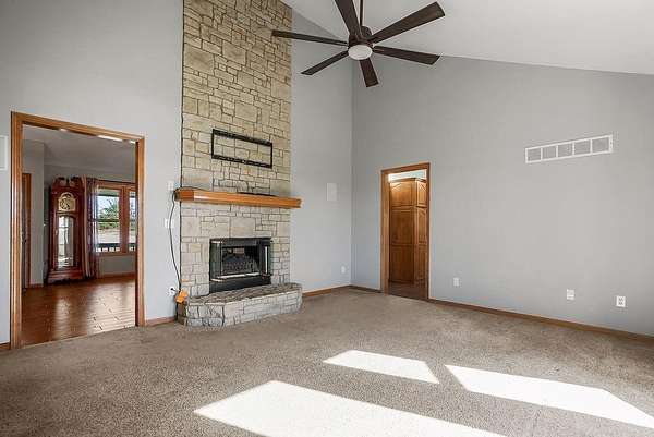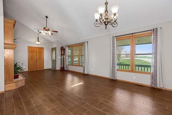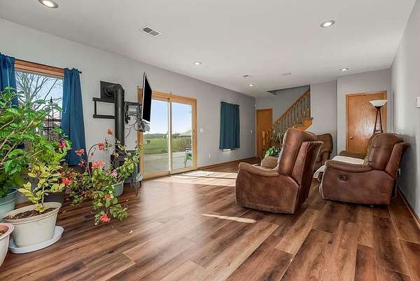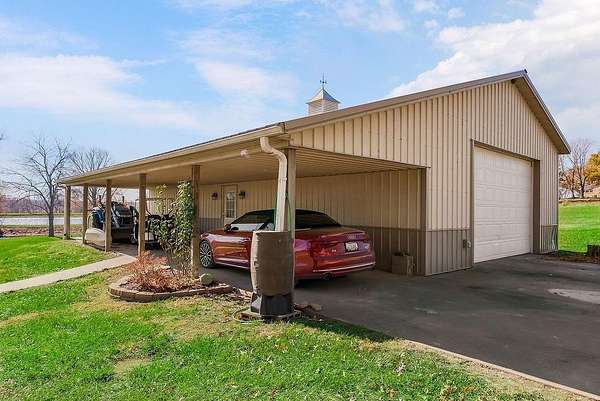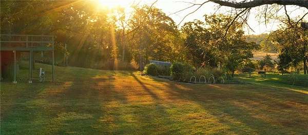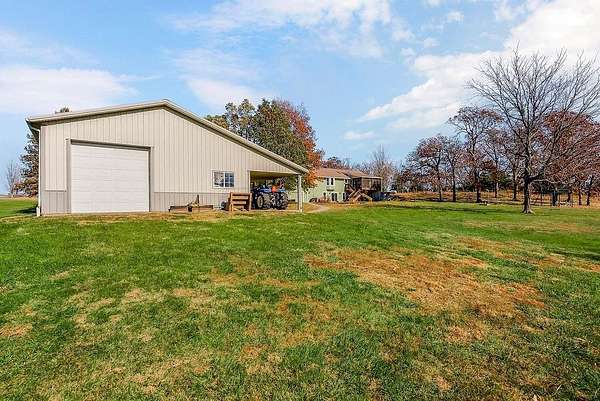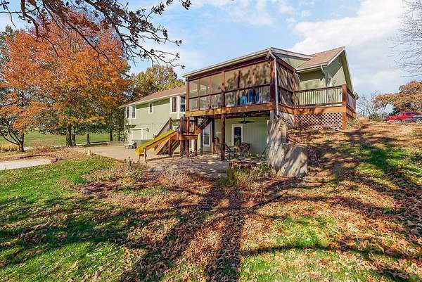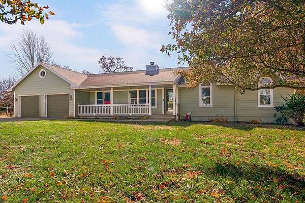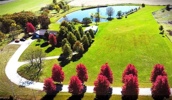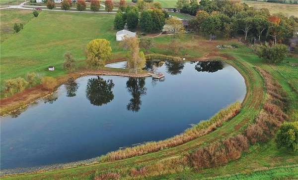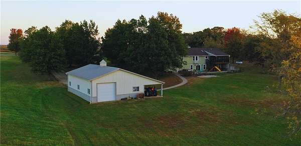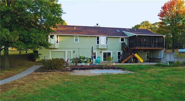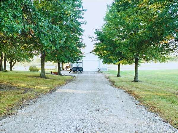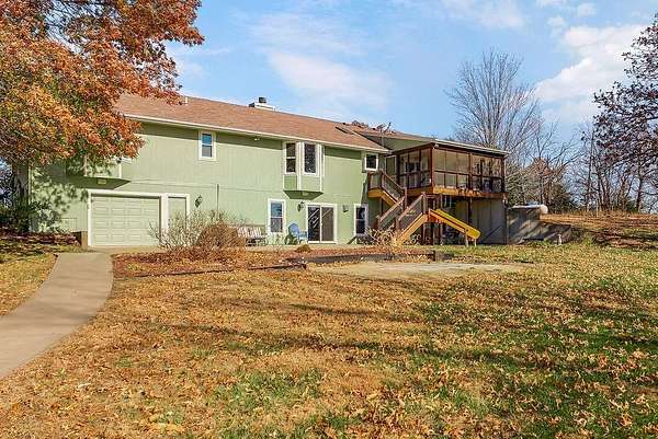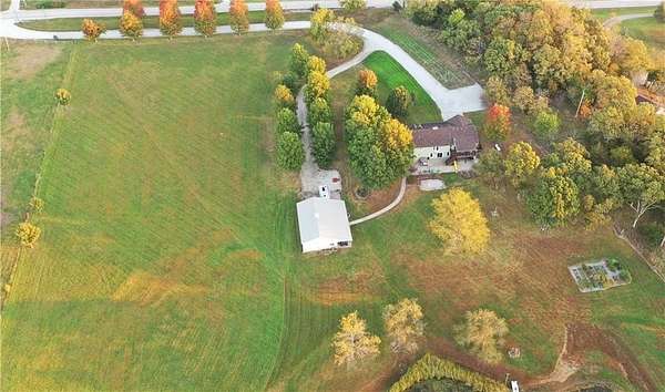 From the moment you turn onto the red maple lined drive, you're welcomed by a canopy of seasonal color that sets the tone for this tranquil country property. Nestled on 14.4 groomed acres, this 4-bedroom reverse ranch offers the space and setting to bring your rural lifestyle dreams to life--whether you're hosting extended family, entertaining the neighborhood, or exploring the possibilities of a hobby farm. The home has been thoughtfully updated with new exterior paint, exterior doors, updated flooring and carpet, lifetime warranty windows, and a remodeled kitchen featuring upscaled granite countertops. The elevated screened porch is a favorite spot to start or end your day--sip your morning coffee as the sun dances across the backyard pond or gather for evening chats enjoying the country air. Downstairs, the walk-out basement offers flexible space for entertaining, with an overhead door opening to a massive patio--ideal for hosting outdoor parties or family celebrations. A built-in slide adds fun for the kids, while adults can unwind in the hot tub or float in the seasonal above-ground pool. Whether you're casting a line in the stocked pond, watching wildlife, or teaching the next generation to fish, the pond is definitely a year-round source of fun & relaxation. Off the southwest corner of the home, the 30' x 50' insulated shop with pull-through overhead doors and a 12' x 50' lean-to that offers endless possibilities. Use it for equipment storage, a workshop, or convert it into a studio or gym. With power, insulation, and easy access, it's ready to support all your hobbies, business ventures, or weekend projects. Located just minutes from Paola and with easy access to Kansas City, this property offers the peace of country living without sacrificing convenience. This is truly a place built for memory-making--and it's ready for the next chapter!