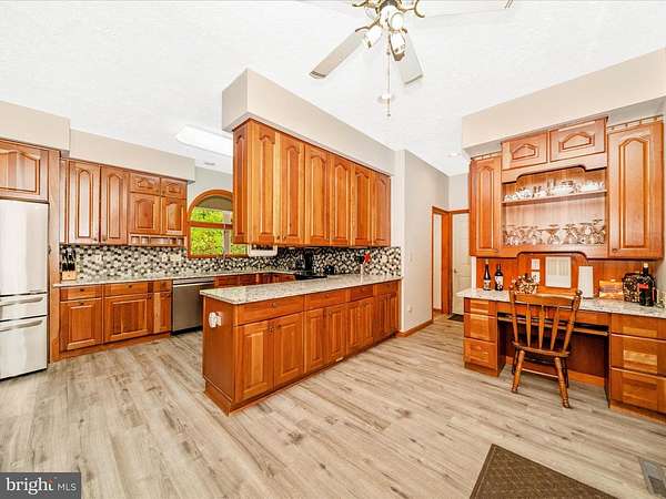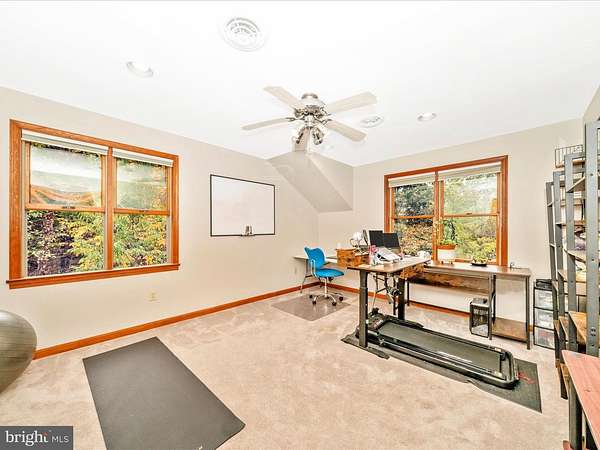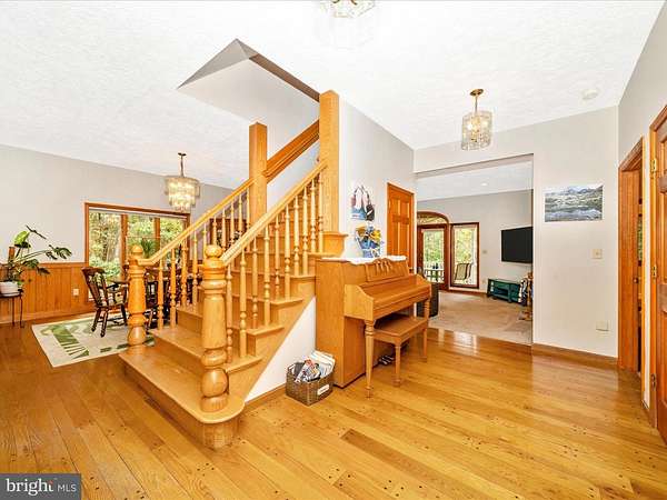 Welcome to Everlee Acres, a secluded estate nestled on over 57 acres of mature woodland in North Frederick County, near Cunningham Falls State Park and other recreational destinations. This all-brick Cape Cod offers more than 3,000 square feet of finished living space, with a spacious main-level primary suite featuring a private bath and French doors that open to a full-length covered porch. The home showcases oak floors with wood pegs, solid wood doors, and large Andersen windows in every room, offering panoramic views of the surrounding forest. The main level includes a formal living room, dining room, and a family room or study, 2 half baths with a rough-in for a wet bar. A second deep porch off the kitchen provides a perfect setting for outdoor dining and entertaining. The recently updated kitchen features solid cherry cabinetry, granite countertops, a custom tile backsplash, stainless steel appliances, and a cleverly designed pantry with hinged storage. Upstairs, three additional bedrooms and a full bath are accessed via a dramatic oak staircase. Each bedroom includes deep closets, and the fourth bedroom or home office offers walk-in access to the attic for additional storage. The walk-out basement spans over 2,000 square feet and includes full-size windows, a rough-in for a future full bath, and a multi-fuel HVAC system designed to run on electricity, propane (buried, owned tank), oil, and wood. A separate heat pump serves the second floor, and an on-demand tankless water heater is available if desired. The home is wired with a Generac backup generator and includes owned solar panels with documentation available for review. A solar water heater is also present in the lower level but is not currently installed. The roof was replaced in 2021, and the solar panels were reinstalled at that time. Additional features include fiber optic internet access, a ChargePoint HomeFlex Level 2 EV Charger in the attached garage, and flat pasture and garden space behind the NEW multi-car garage pole building-ideal for growing produce or establishing a hobby farm. The property also includes a historic outbuilding, scenic trails, and natural stone formations. Everlee Acres offers a rare opportunity to own a private retreat with modern amenities, energy independence, and endless potential. Whether you're seeking a homestead, equestrian property, or peaceful escape, this extraordinary home is ready to welcome you.