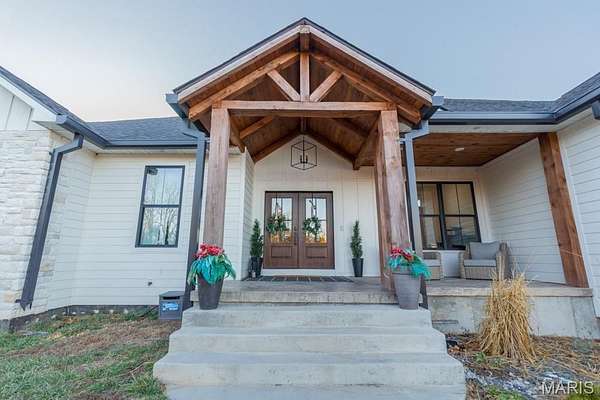 Nestled on approximately twelve acres at the edge of town, this modern farmhouse offers the perfect blend of space, privacy, and convenience. Designed with timeless farmhouse character and modern functionality, the home provides the freedom of country living while remaining just minutes from schools, shopping, and dining. It is a rare opportunity to enjoy acreage without sacrificing accessibility.