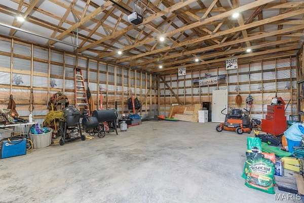 The exterior features classic modern farmhouse appeal with clean lines, charming detailing, and a welcoming front porch that sets the tone for relaxed living. Large windows fill the home with natural light and capture peaceful views of the surrounding land, creating a strong connection between indoor and outdoor spaces. Inside, the open-concept main level is warm, bright, and thoughtfully laid out for everyday comfort and entertaining. Wide-plank flooring and high ceilings enhance the sense of openness, while the seamless flow between the living room, dining area, and kitchen makes the space both functional and inviting. The kitchen serves as the heart of the home, offering a spacious island, ample cabinetry, and quality finishes that balance style with practicality but also offers a large walk in pantry that is ideal for storage along with the perfect space for a coffee bar. The adjacent dining area overlooks the acreage, making every meal feel connected to the outdoors. The living room is comfortable and welcoming, ideal for gatherings or quiet evenings at home. The primary suite offers a private retreat with generous space, natural light, and calming views of the property, along with a well-appointed bathroom designed for daily ease. Additional bedrooms are versatile and spacious, suitable for family, guests, or a home office. A generous size unfinished basement (2,866 sq ft) provides excellent storage and endless potential for future expansion, whether for additional living space, recreation, or customized needs, not to mention the large safe room is just an added bonus. Outside, the approximately twelve acres offer room to roam, garden, enjoy outdoor activities, or simply appreciate open space and privacy. Completing the property is a 30' x 40' shop building, perfect for hobbies, storage, equipment, or business use, adding exceptional functionality and value. Located at the edge of town, this property truly checks all the boxes--modern farmhouse style, usable acreage, expansion potential, and a versatile shop--offering a lifestyle that is both peaceful and convenient!
