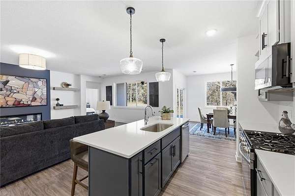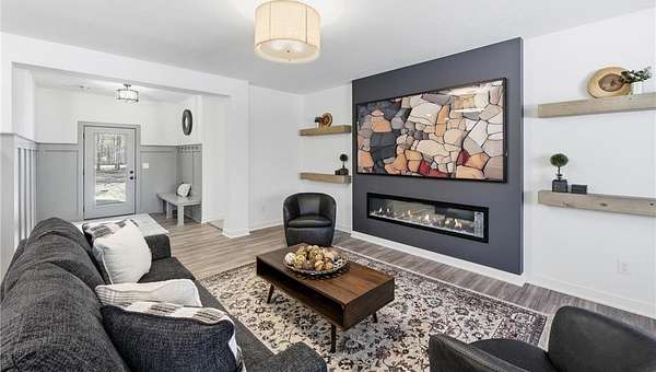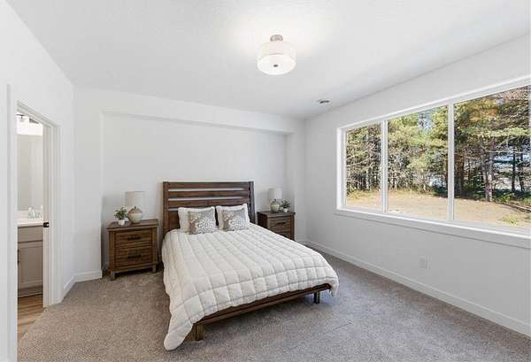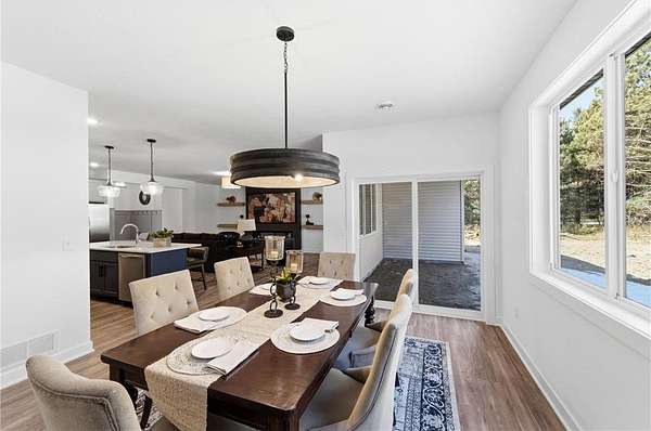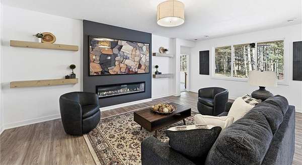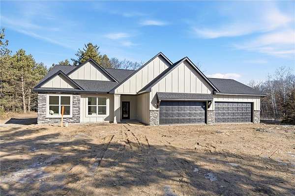 WOW!! Check out this newly completed executive slab-on-grade rambler. Tucked away on a private 2.5-acre wooded lot in Pine Crest Estates West, offering convenient one-level living surrounded by peaceful natural beauty. The open-concept design is filled with natural light from large windows that capture serene wooded views. Architectural details include custom cabinetry, luxury vinyl plank flooring, quartz countertops, and a cozy fireplace. A covered rear patio provides the perfect spot to relax and enjoy the outdoors.